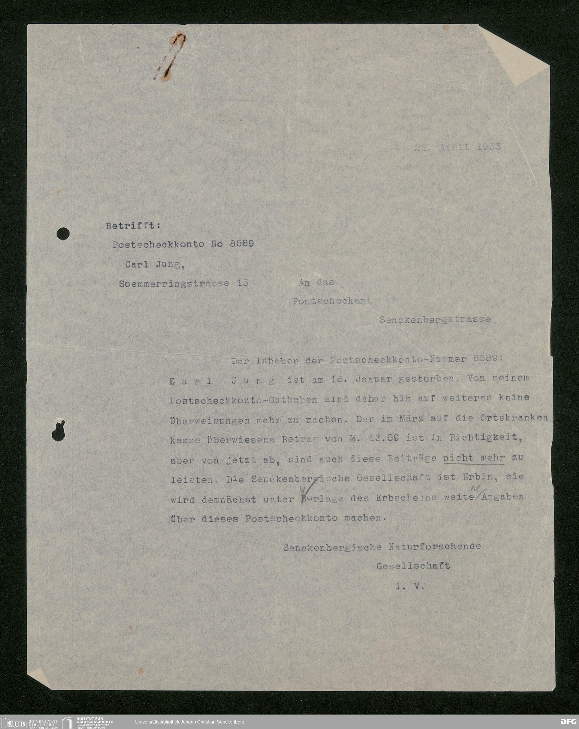 V176 Senckenberg Gesellschaft für Naturforschung, 543 - Verwaltung des Nachlasses von Eva Hermann geb. Ermold