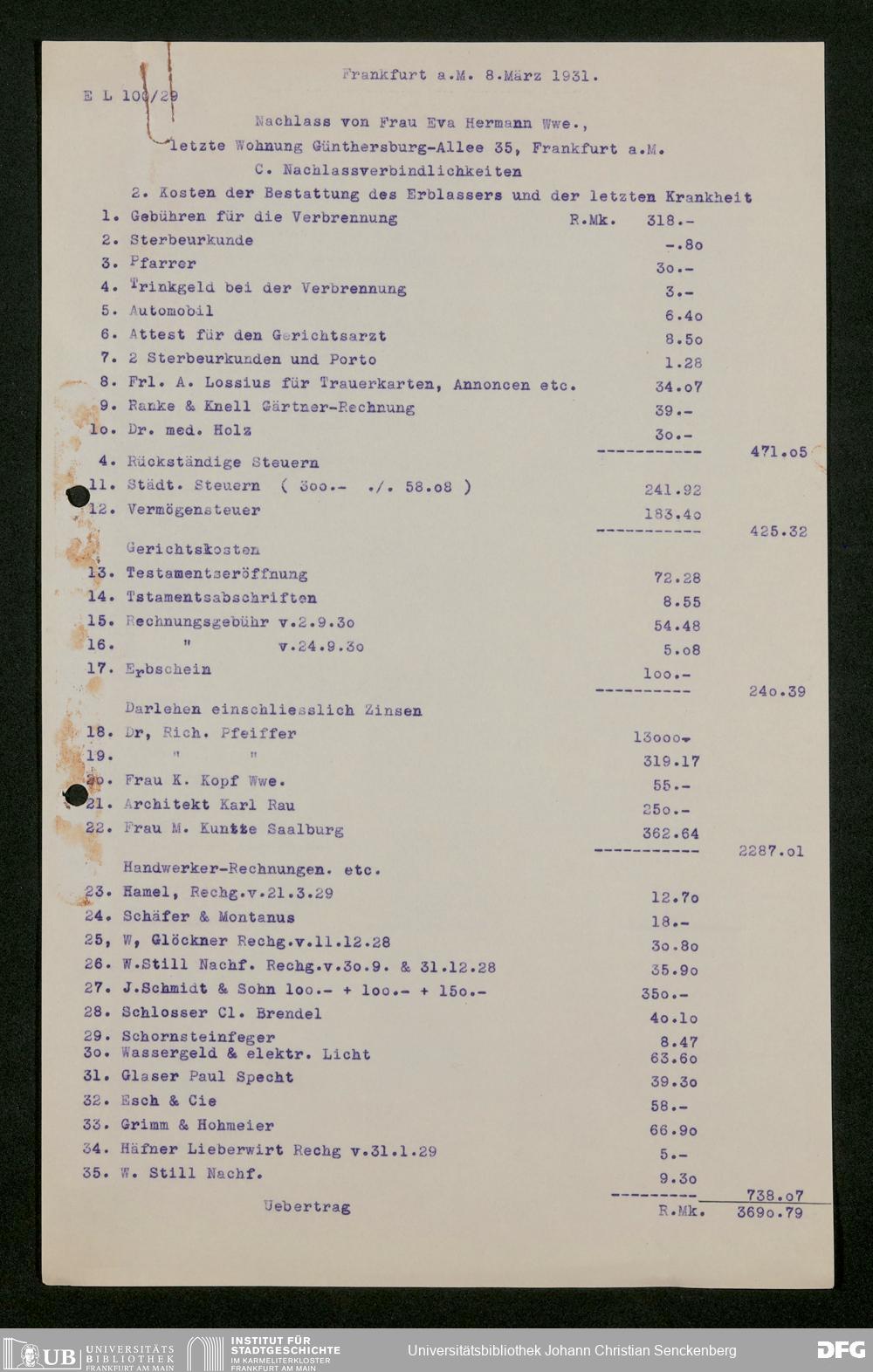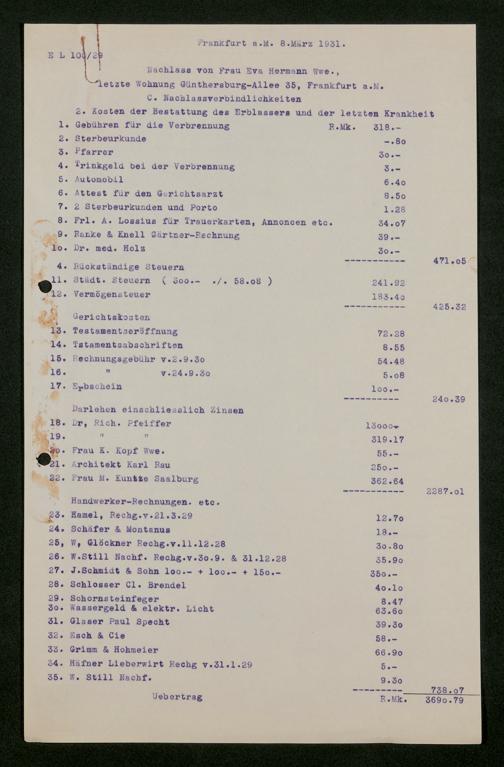 V176 Senckenberg Gesellschaft für Naturforschung, 543 - Verwaltung des Nachlasses von Eva Hermann geb. Ermold