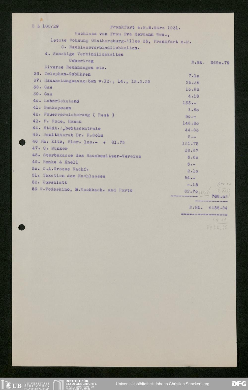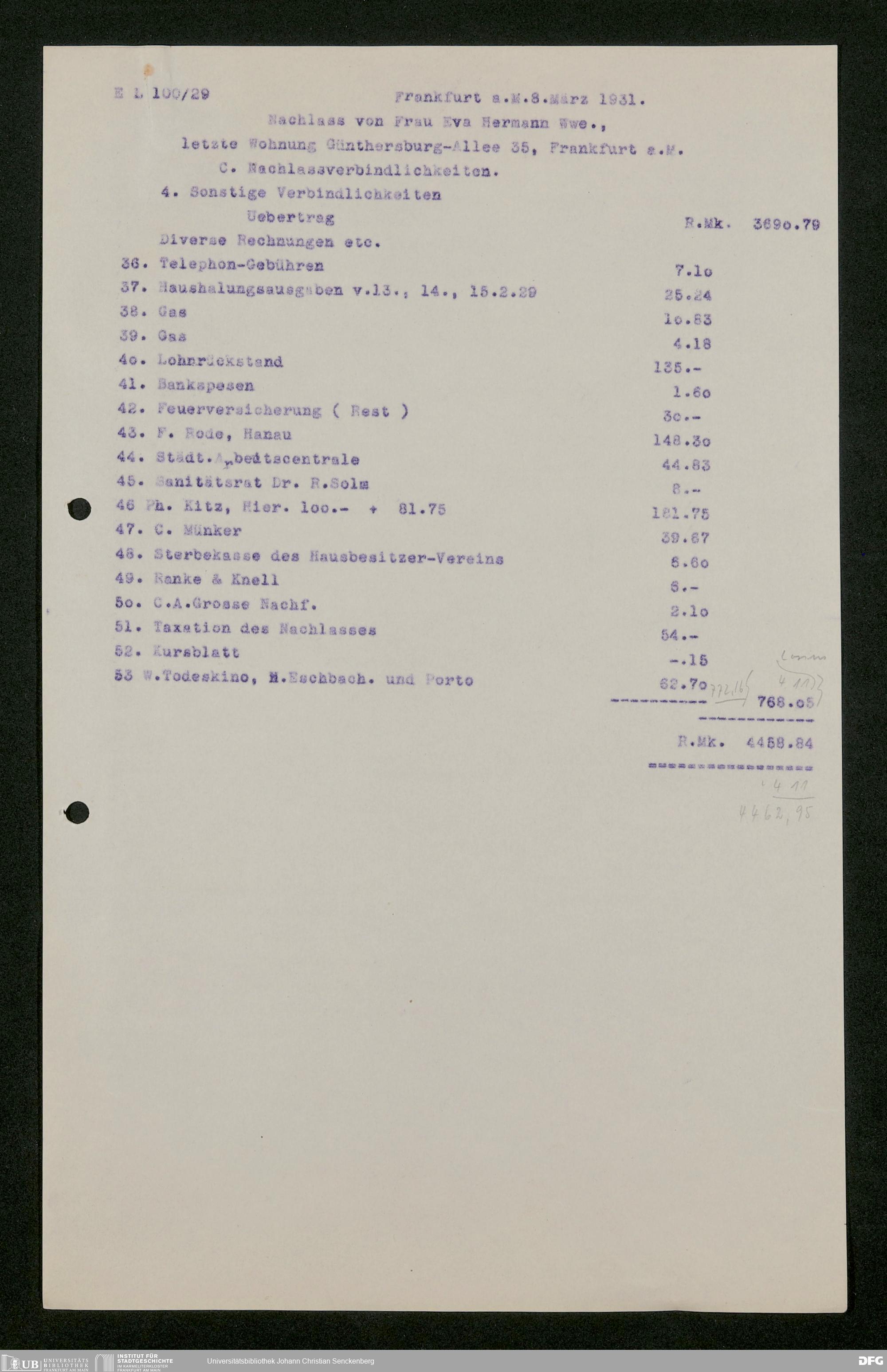 V176 Senckenberg Gesellschaft für Naturforschung, 543 - Verwaltung des Nachlasses von Eva Hermann geb. Ermold