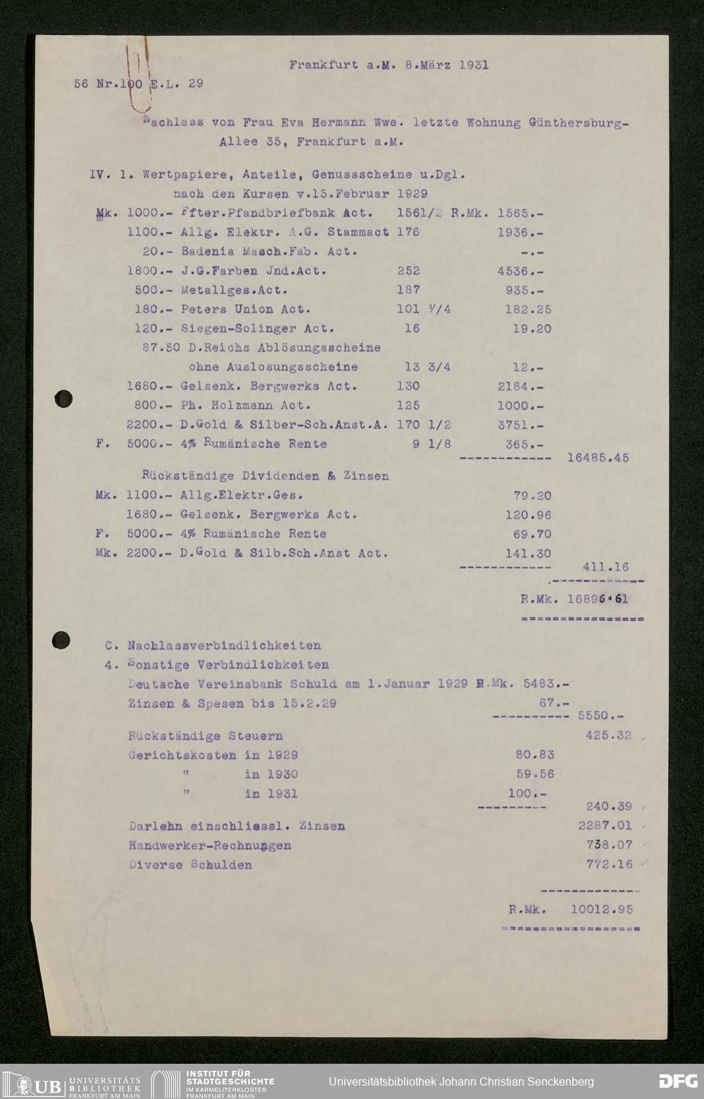 V176 Senckenberg Gesellschaft für Naturforschung, 543 - Verwaltung des Nachlasses von Eva Hermann geb. Ermold
