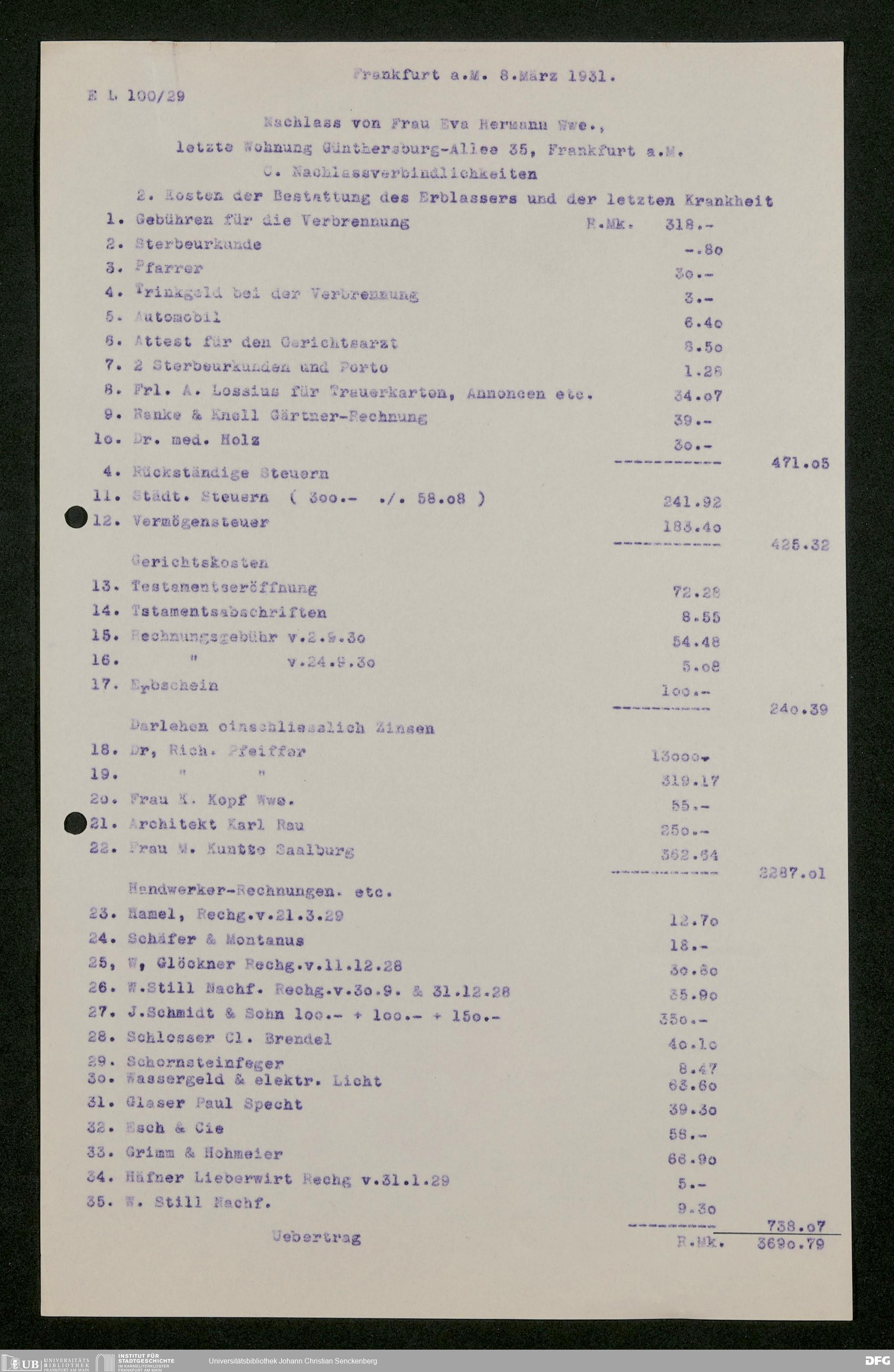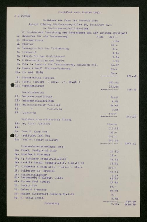 V176 Senckenberg Gesellschaft für Naturforschung, 543 - Verwaltung des Nachlasses von Eva Hermann geb. Ermold