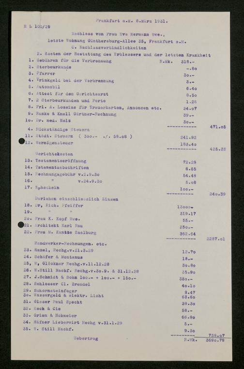 V176 Senckenberg Gesellschaft für Naturforschung, 543 - Verwaltung des Nachlasses von Eva Hermann geb. Ermold