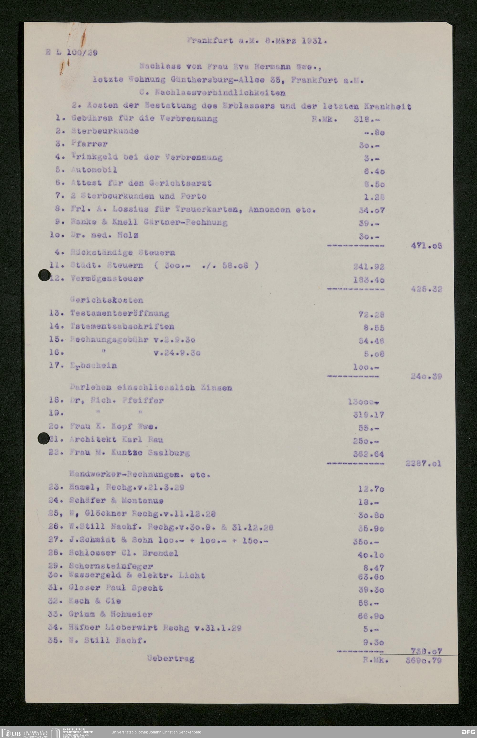 V176 Senckenberg Gesellschaft für Naturforschung, 543 - Verwaltung des Nachlasses von Eva Hermann geb. Ermold