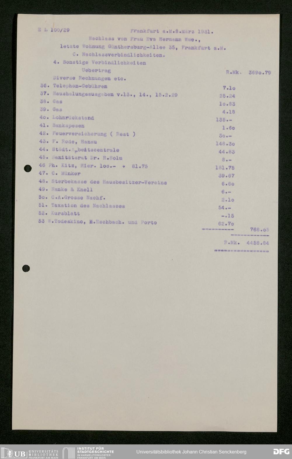 V176 Senckenberg Gesellschaft für Naturforschung, 543 - Verwaltung des Nachlasses von Eva Hermann geb. Ermold