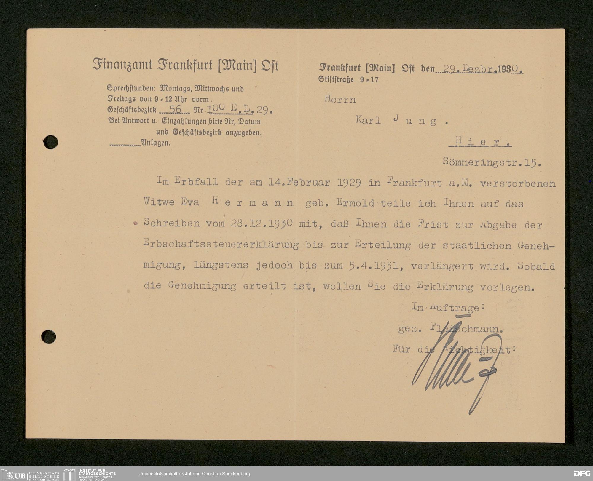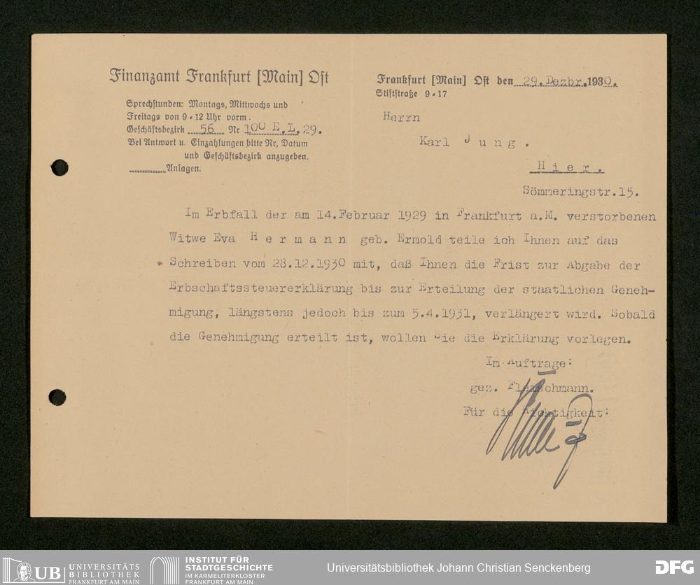 V176 Senckenberg Gesellschaft für Naturforschung, 543 - Verwaltung des Nachlasses von Eva Hermann geb. Ermold