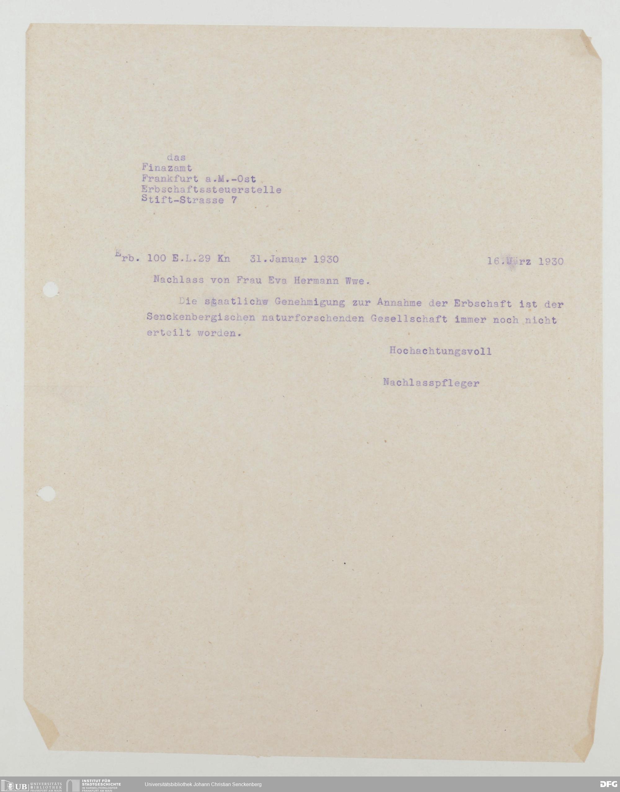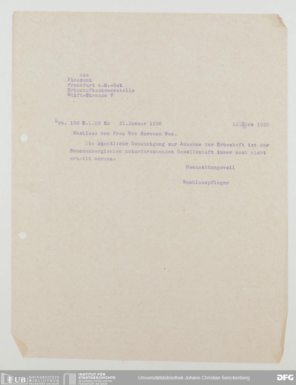 V176 Senckenberg Gesellschaft für Naturforschung, 543 - Verwaltung des Nachlasses von Eva Hermann geb. Ermold
