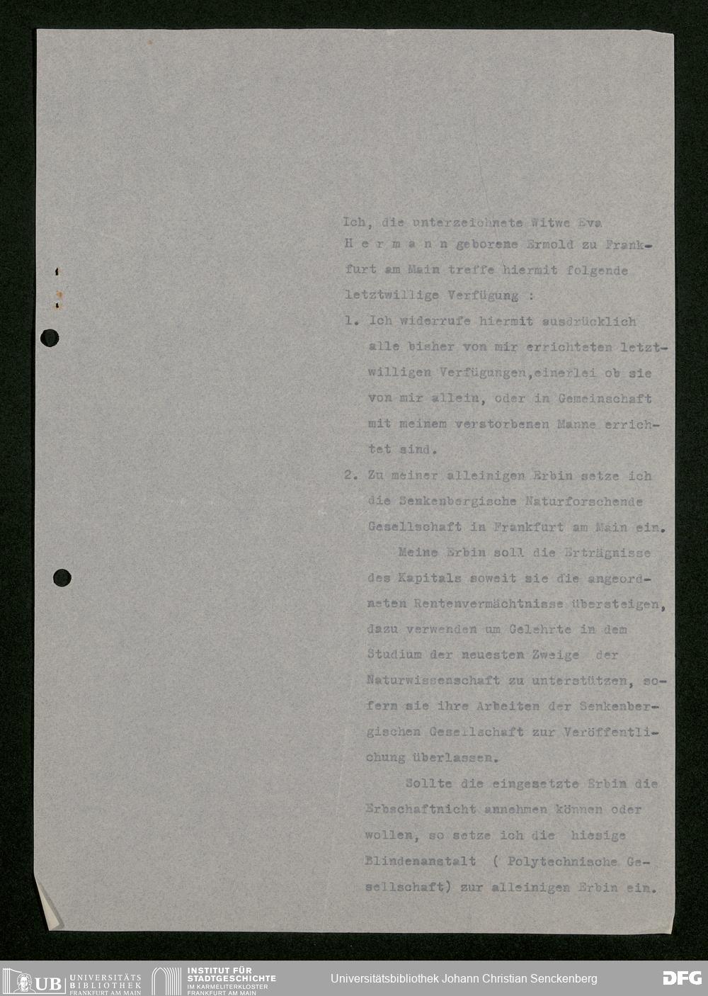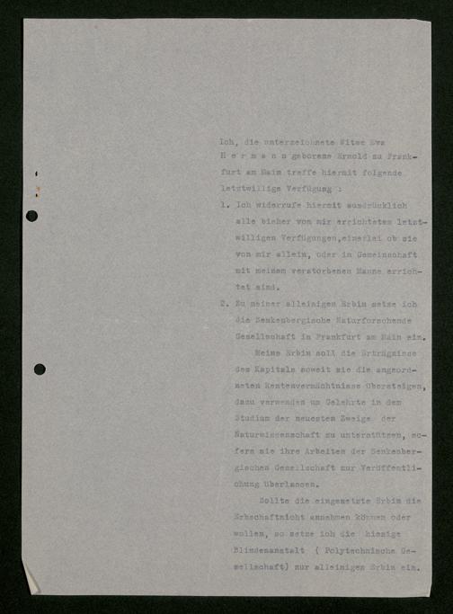 V176 Senckenberg Gesellschaft für Naturforschung, 543 - Verwaltung des Nachlasses von Eva Hermann geb. Ermold