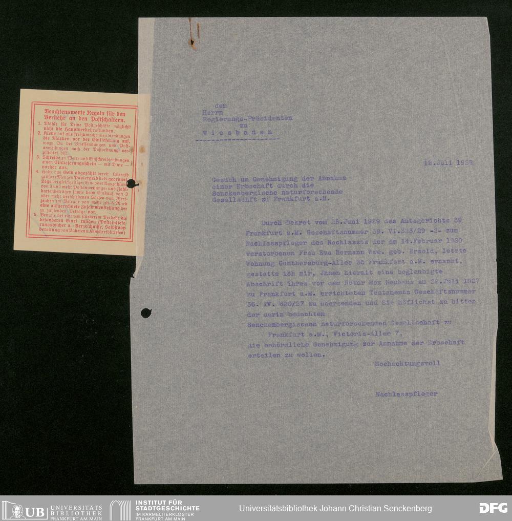 V176 Senckenberg Gesellschaft für Naturforschung, 543 - Verwaltung des Nachlasses von Eva Hermann geb. Ermold