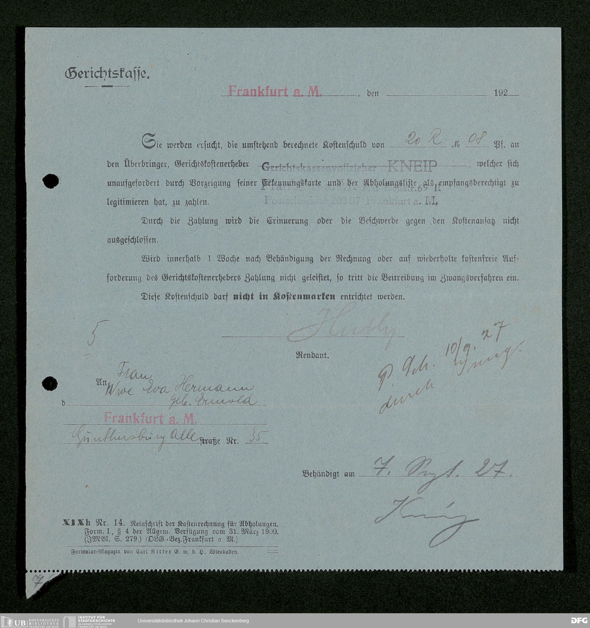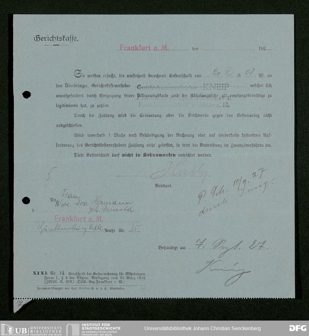 V176 Senckenberg Gesellschaft für Naturforschung, 543 - Verwaltung des Nachlasses von Eva Hermann geb. Ermold