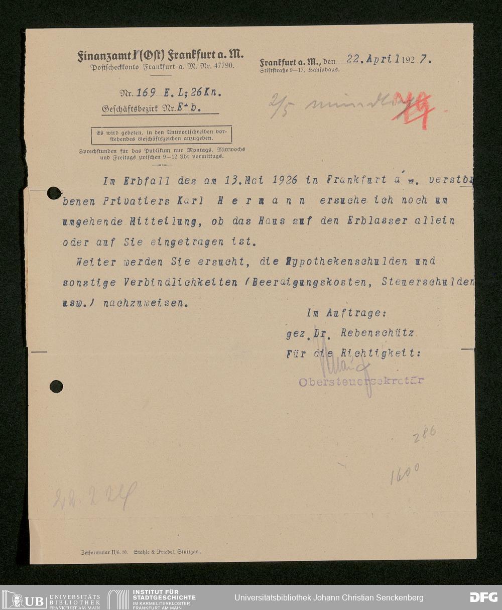 V176 Senckenberg Gesellschaft für Naturforschung, 543 - Verwaltung des Nachlasses von Eva Hermann geb. Ermold