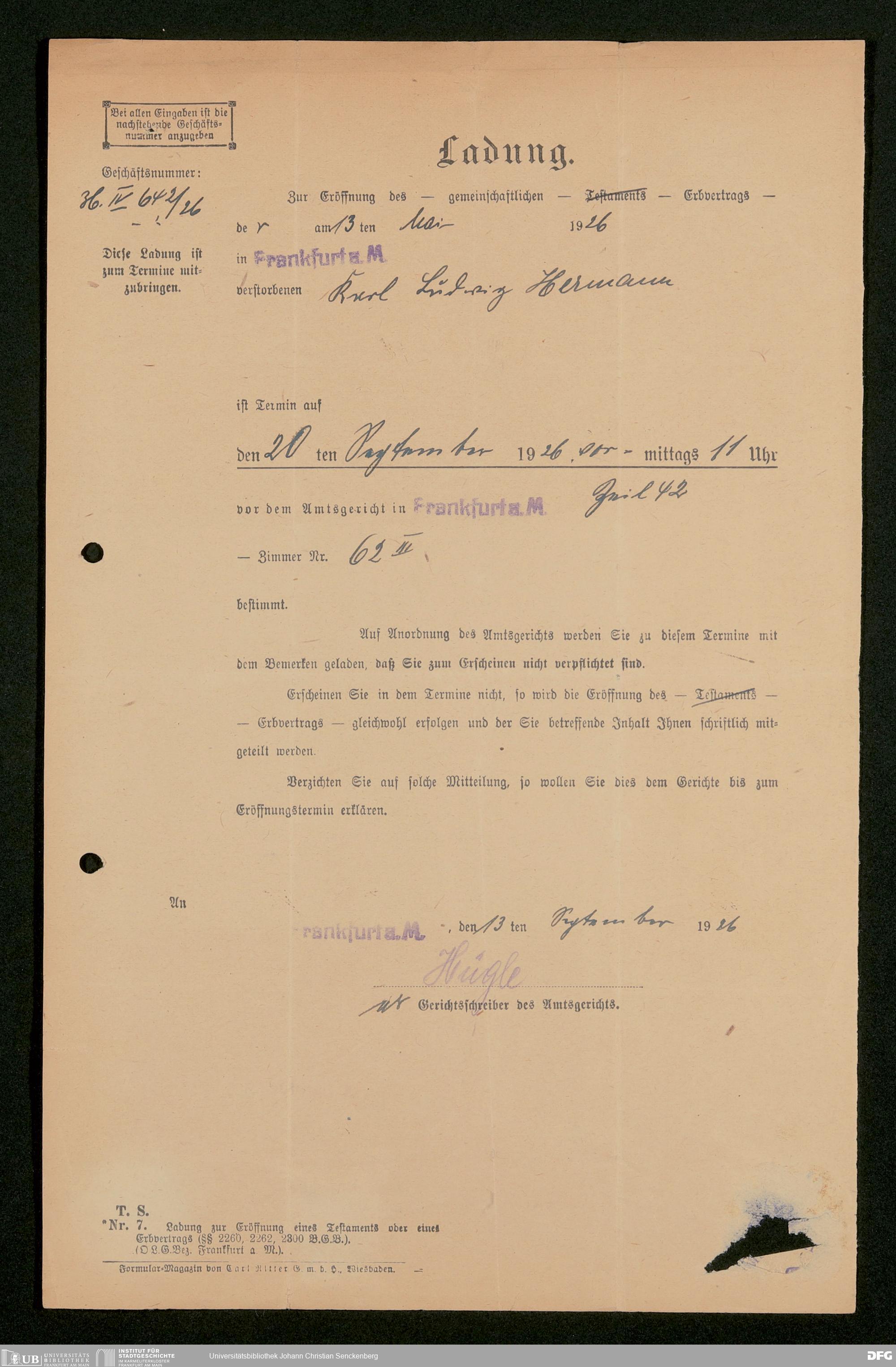 V176 Senckenberg Gesellschaft für Naturforschung, 543 - Verwaltung des Nachlasses von Eva Hermann geb. Ermold