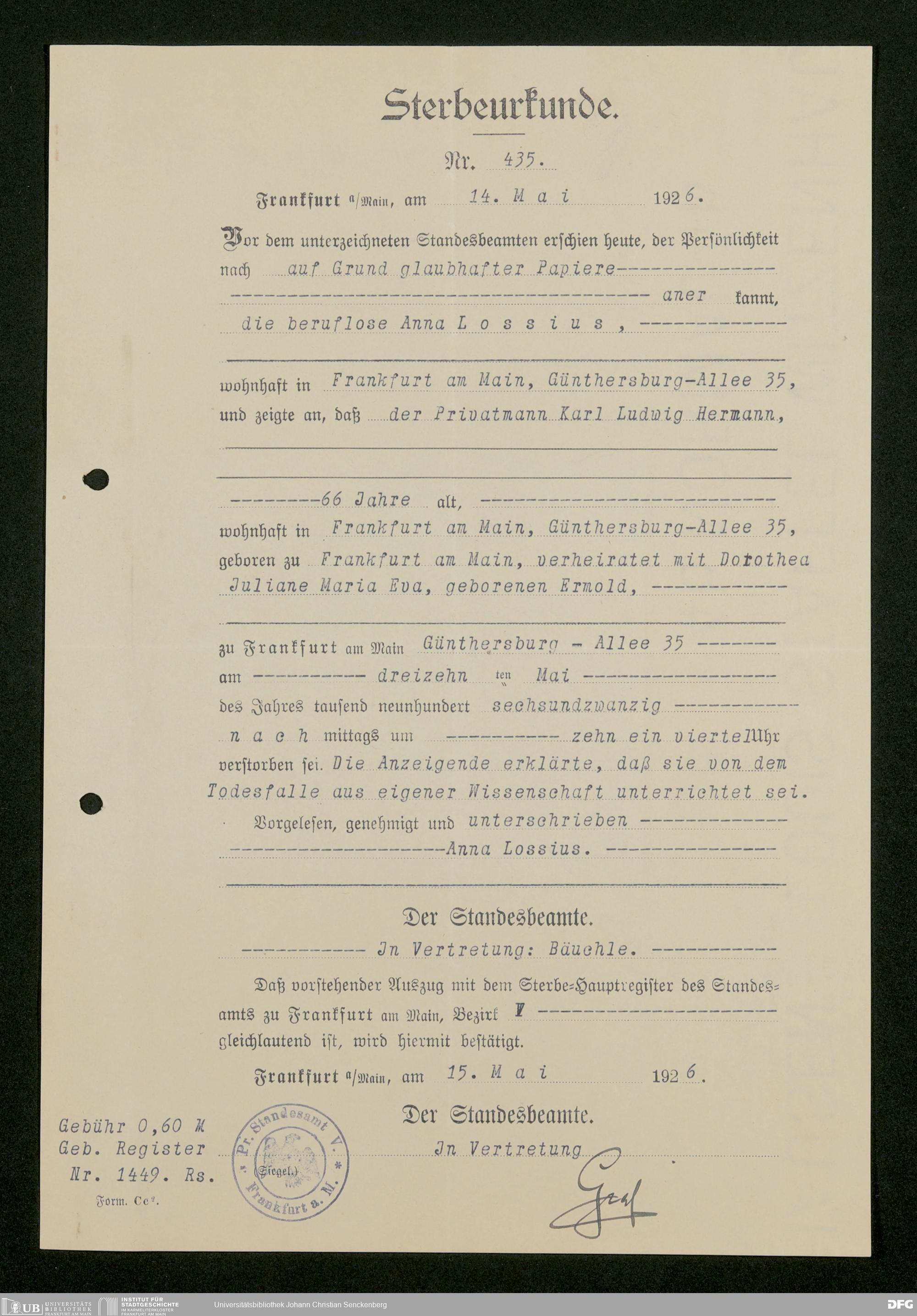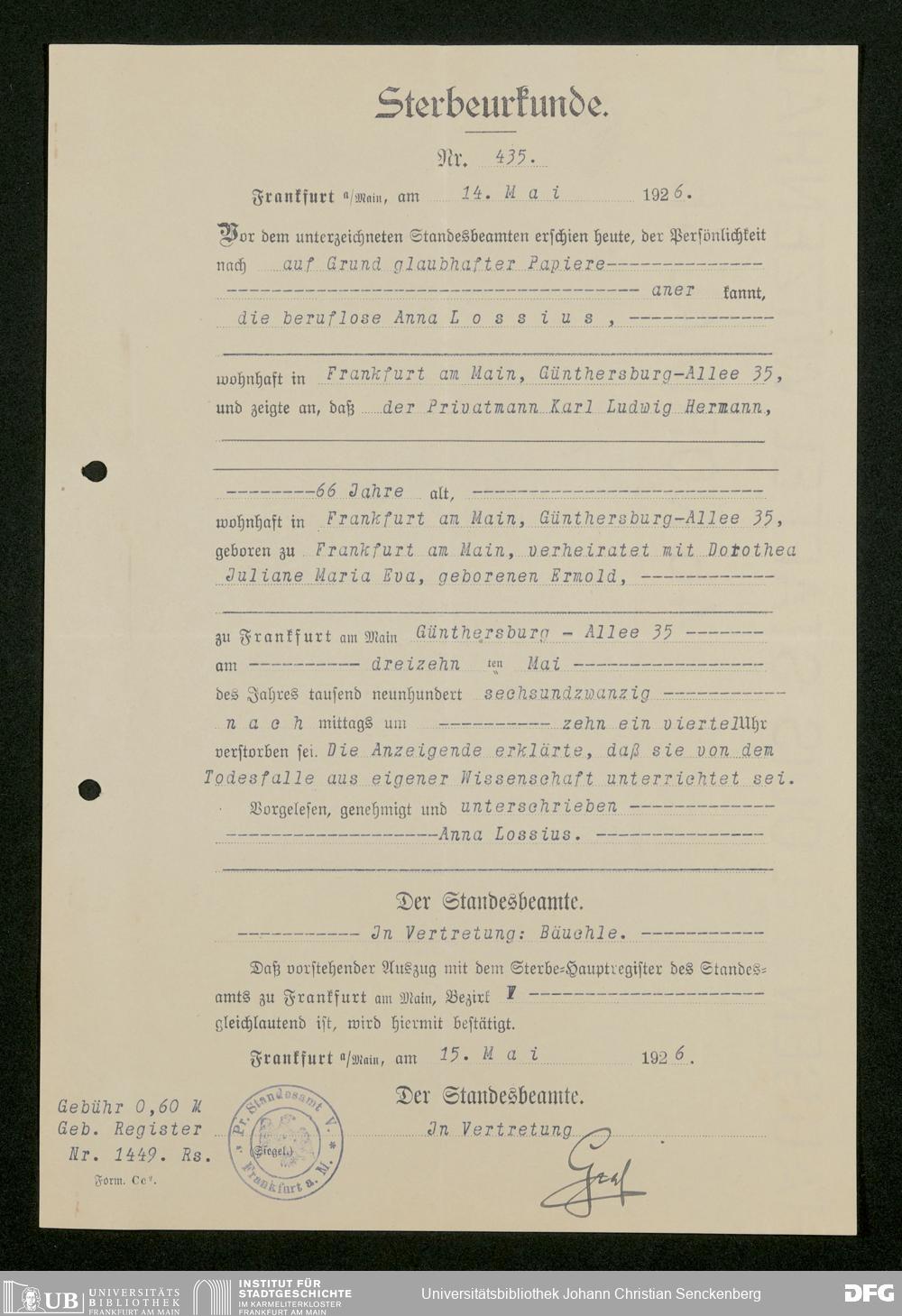 V176 Senckenberg Gesellschaft für Naturforschung, 543 - Verwaltung des Nachlasses von Eva Hermann geb. Ermold