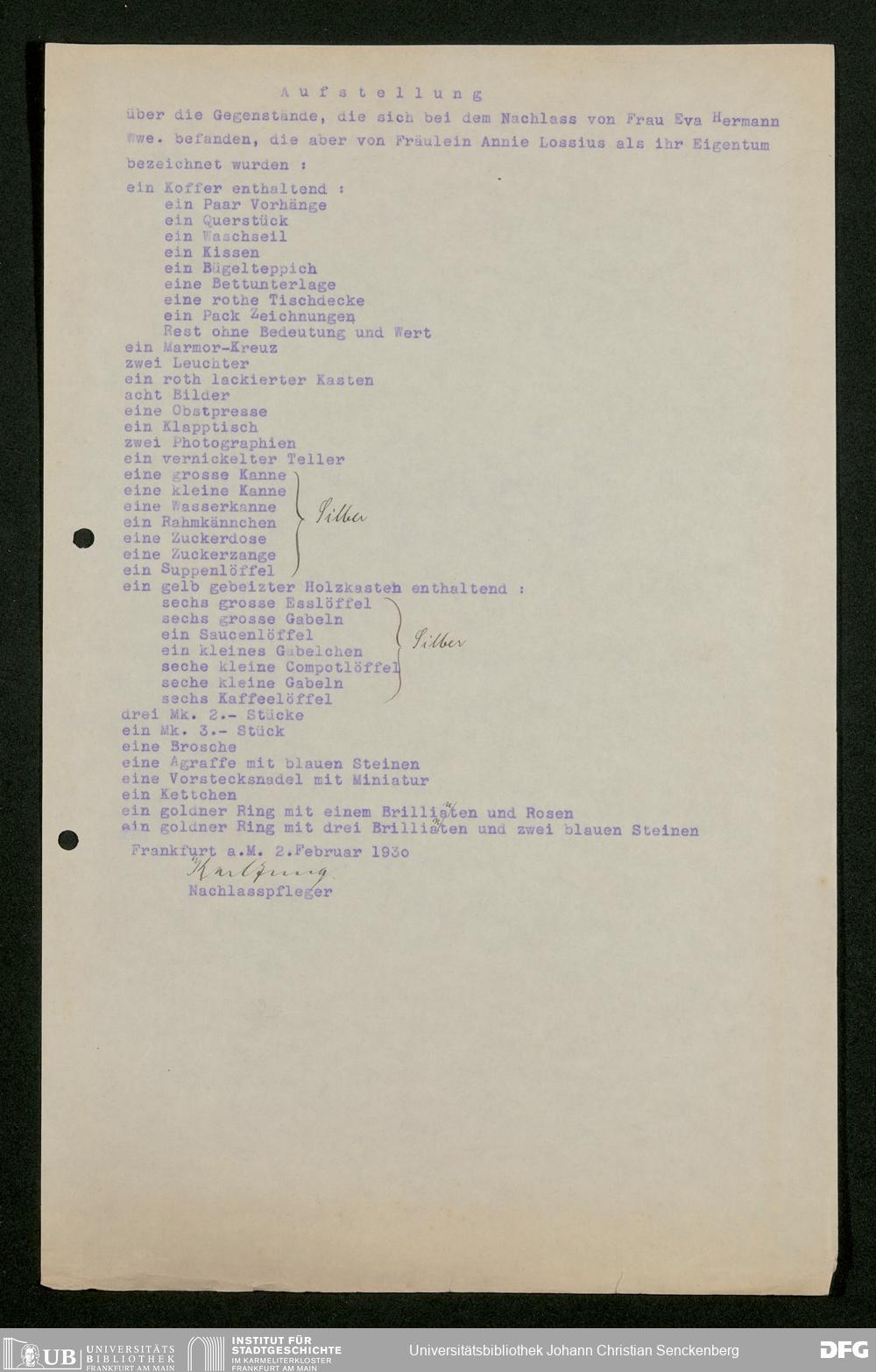 Nachlass Georg Kloss