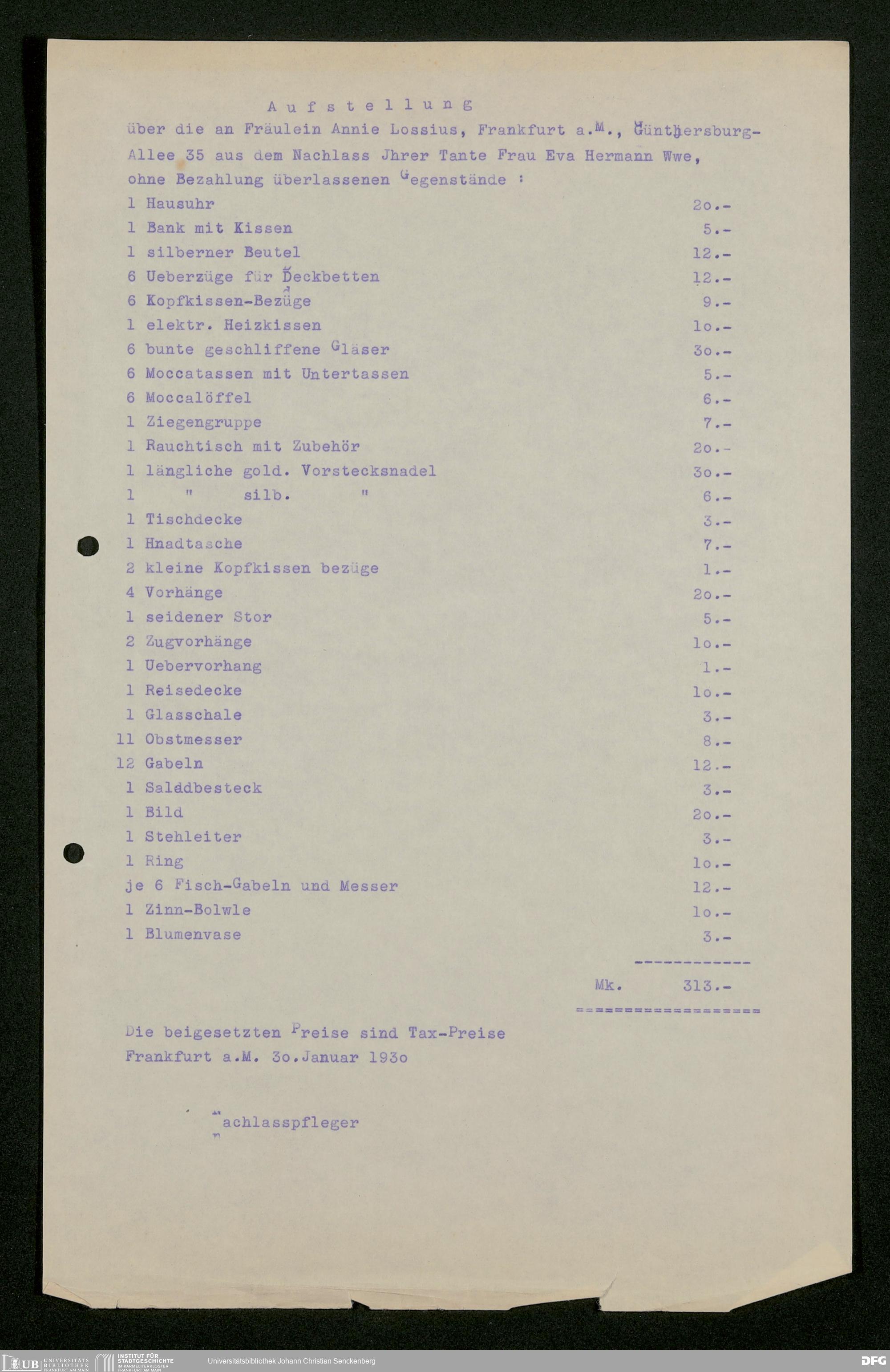 V176 Senckenberg Gesellschaft für Naturforschung, 543 - Verwaltung des Nachlasses von Eva Hermann geb. Ermold