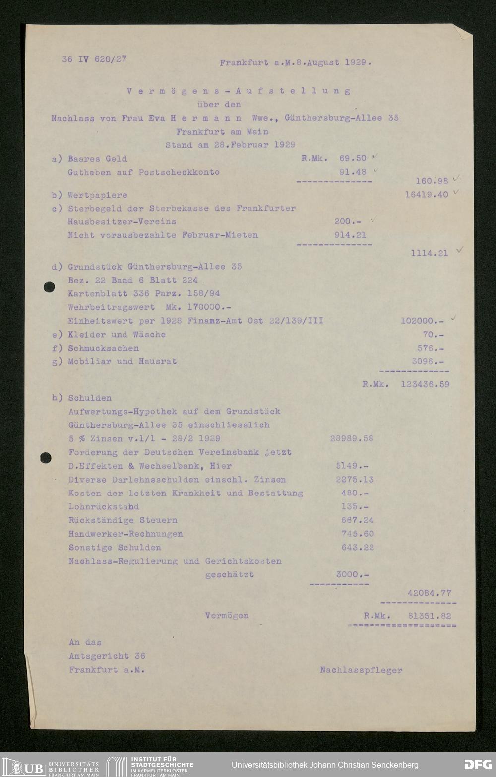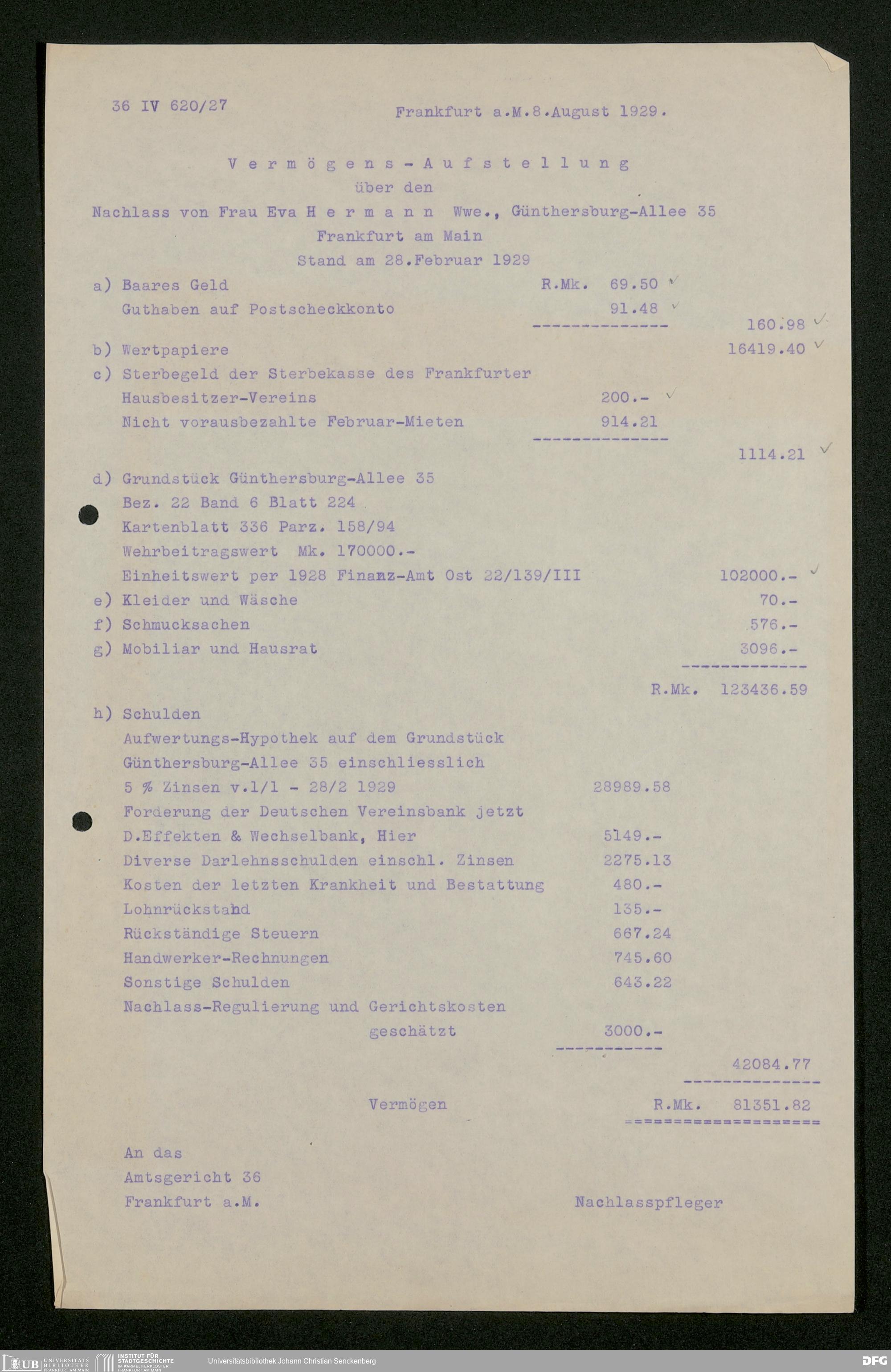 V176 Senckenberg Gesellschaft für Naturforschung, 543 - Verwaltung des Nachlasses von Eva Hermann geb. Ermold