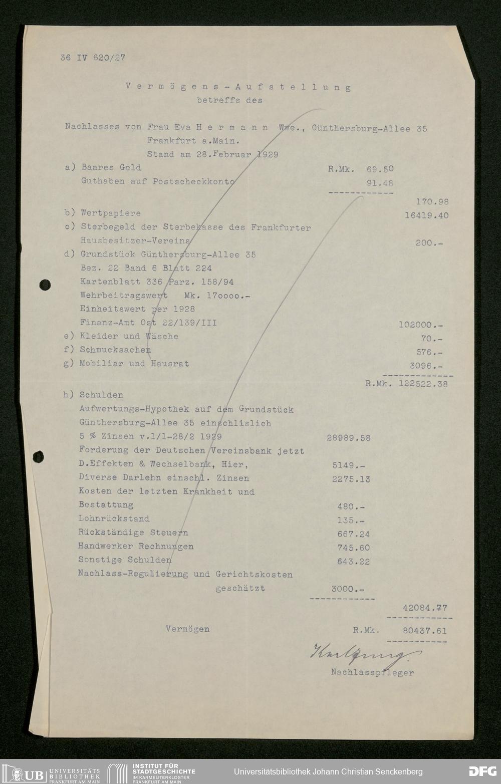 V176 Senckenberg Gesellschaft für Naturforschung, 543 - Verwaltung des Nachlasses von Eva Hermann geb. Ermold