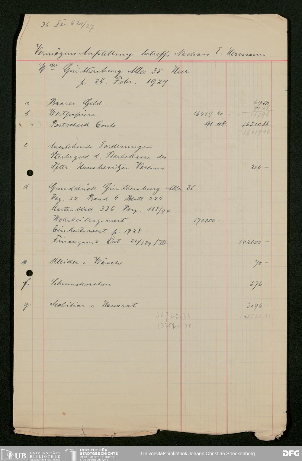 V176 Senckenberg Gesellschaft für Naturforschung, 543 - Verwaltung des Nachlasses von Eva Hermann geb. Ermold