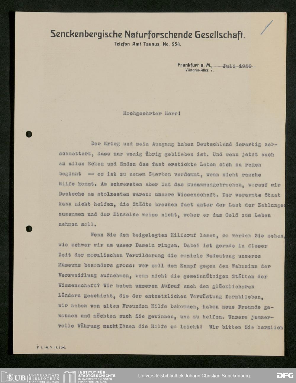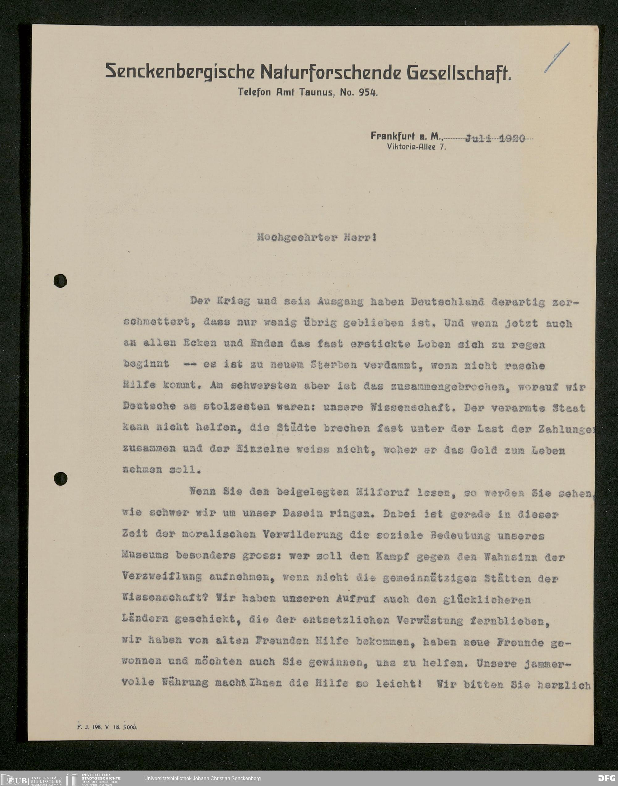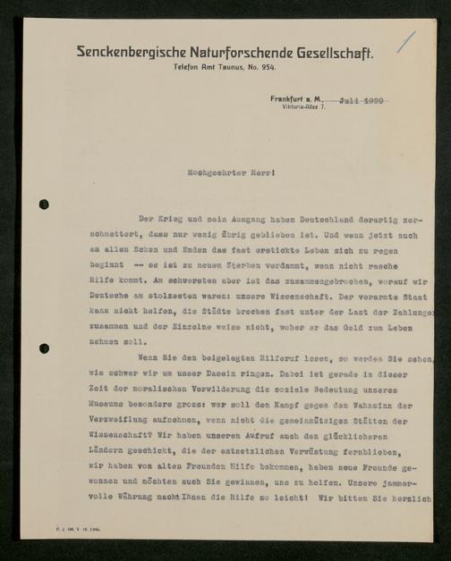 V176 Senckenberg Gesellschaft für Naturforschung, 581 - Mitgliederwerbung und Bitten um finanzielle Unterstützung der Senckenbergischen Naturforschenden Gesellschaft