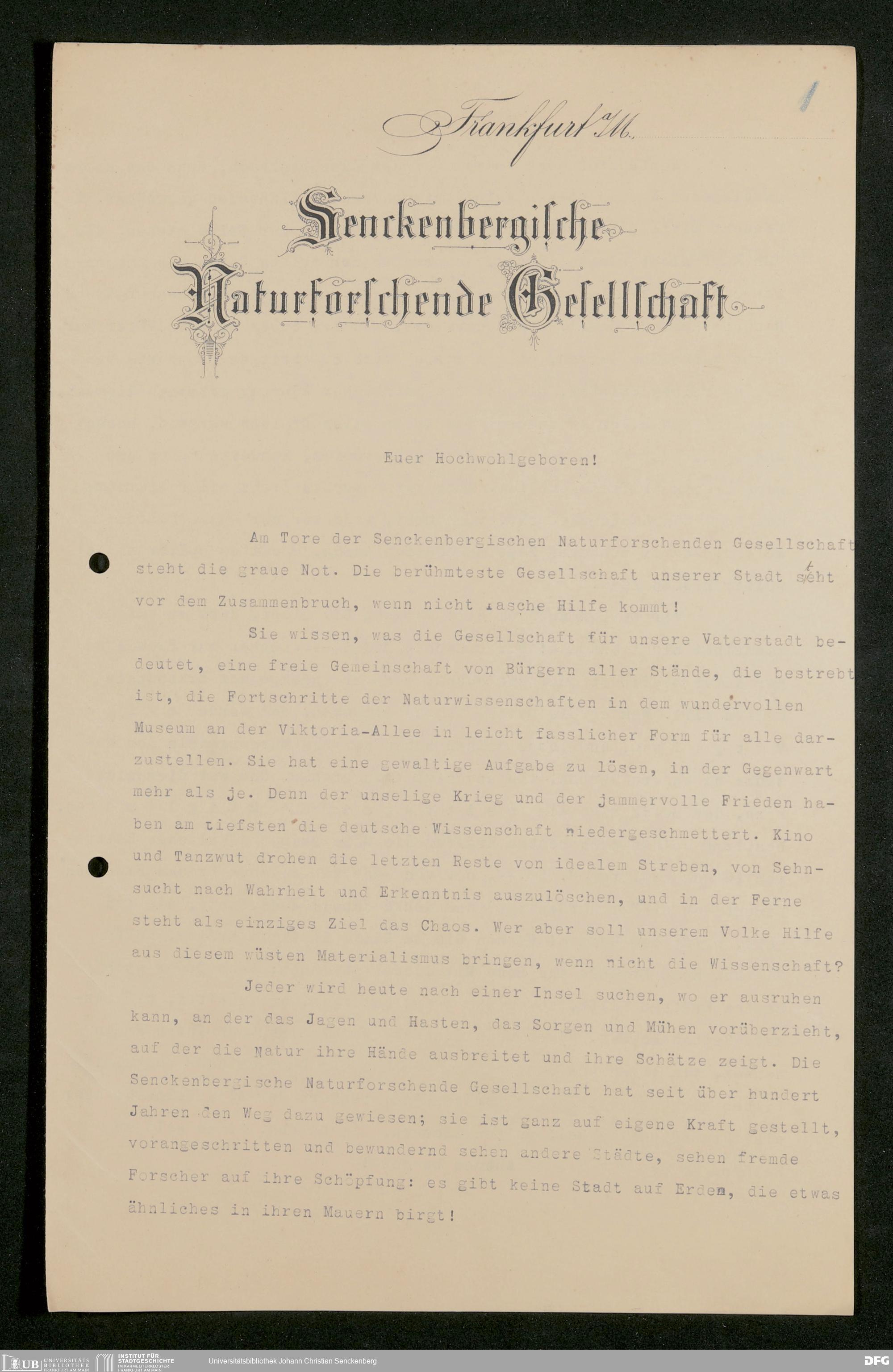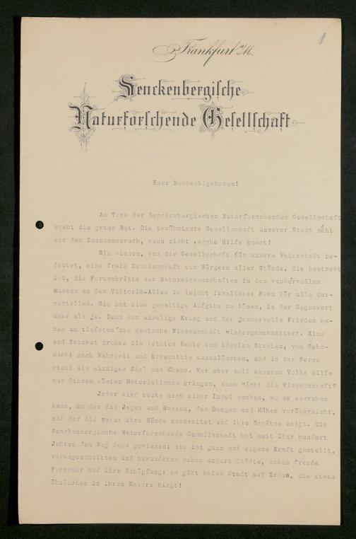 V176 Senckenberg Gesellschaft für Naturforschung, 581 - Mitgliederwerbung und Bitten um finanzielle Unterstützung der Senckenbergischen Naturforschenden Gesellschaft