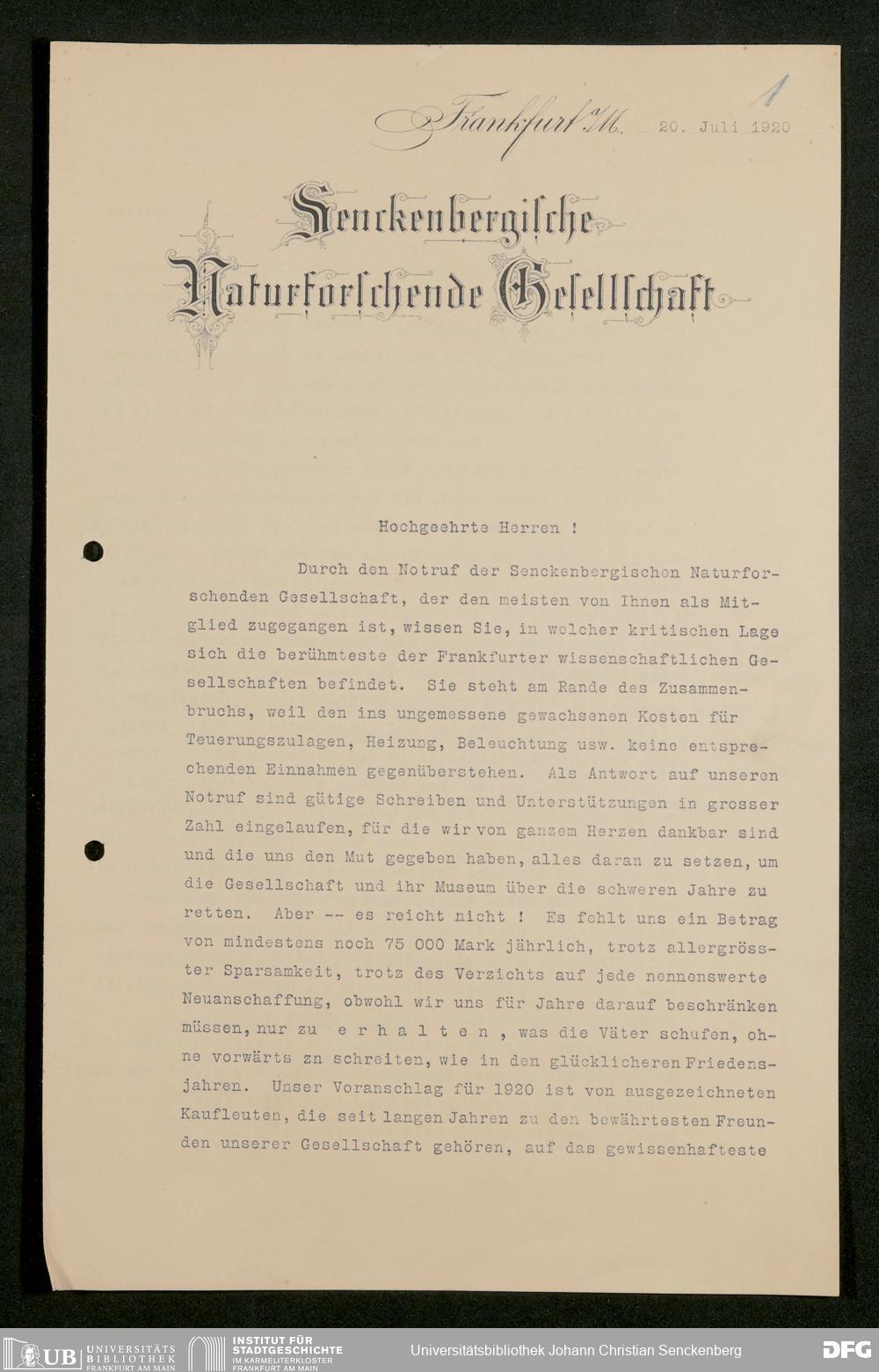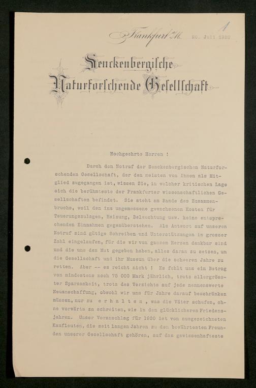 V176 Senckenberg Gesellschaft für Naturforschung, 581 - Mitgliederwerbung und Bitten um finanzielle Unterstützung der Senckenbergischen Naturforschenden Gesellschaft
