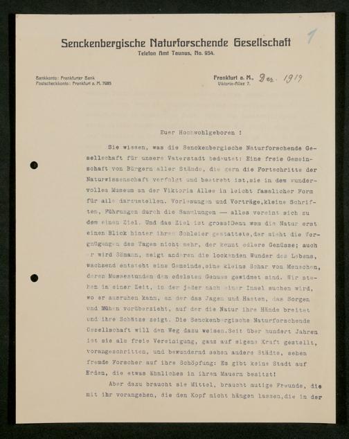V176 Senckenberg Gesellschaft für Naturforschung, 581 - Mitgliederwerbung und Bitten um finanzielle Unterstützung der Senckenbergischen Naturforschenden Gesellschaft