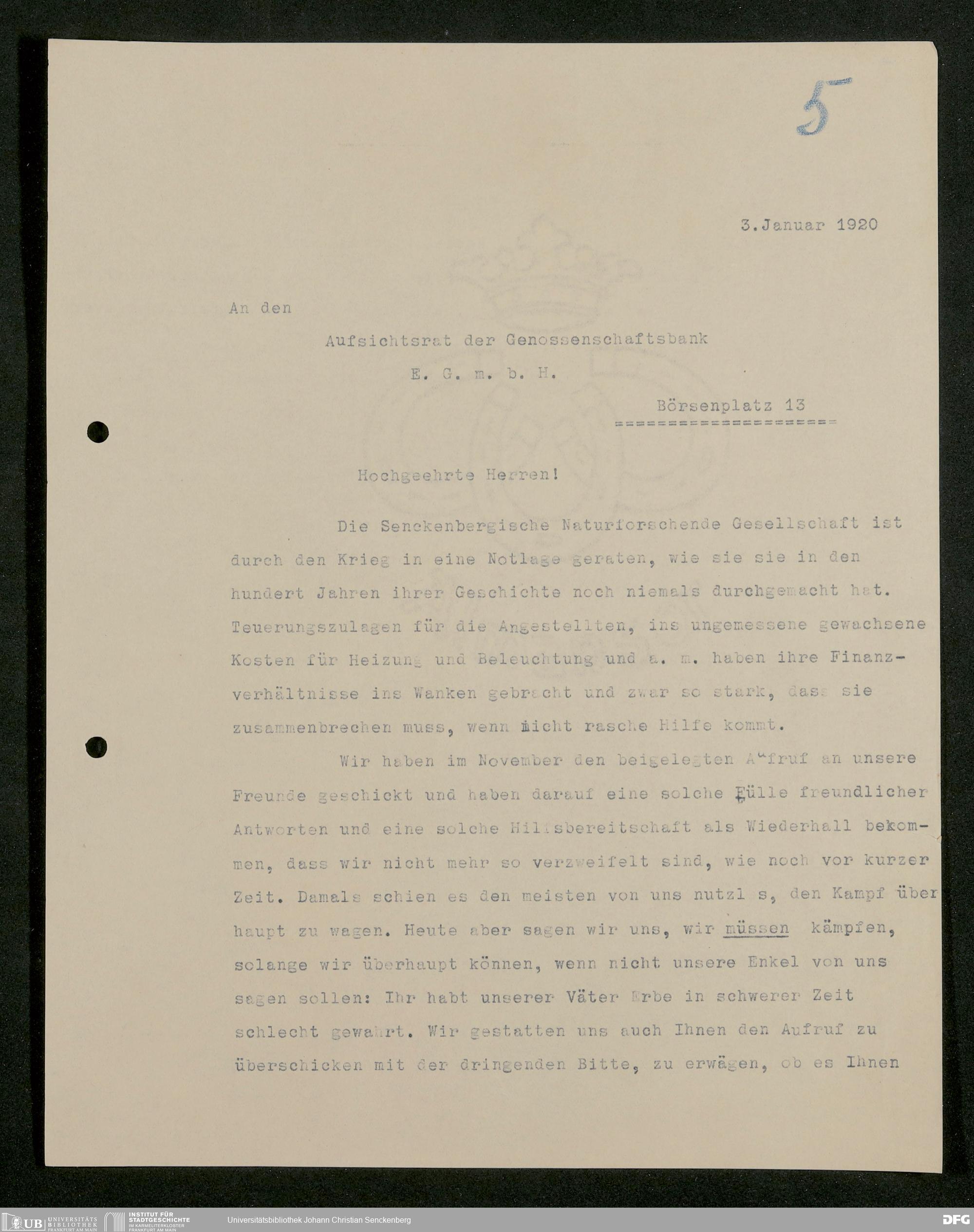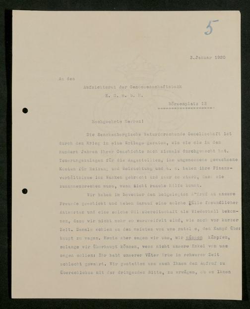 V176 Senckenberg Gesellschaft für Naturforschung, 581 - Mitgliederwerbung und Bitten um finanzielle Unterstützung der Senckenbergischen Naturforschenden Gesellschaft
