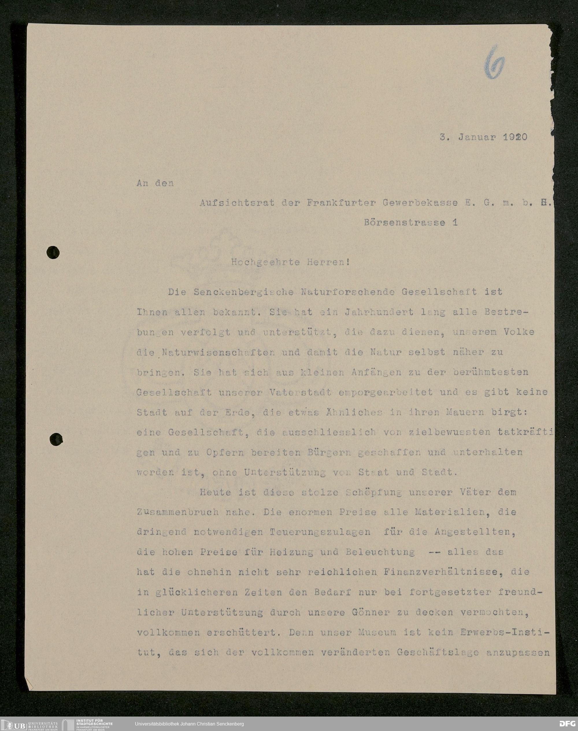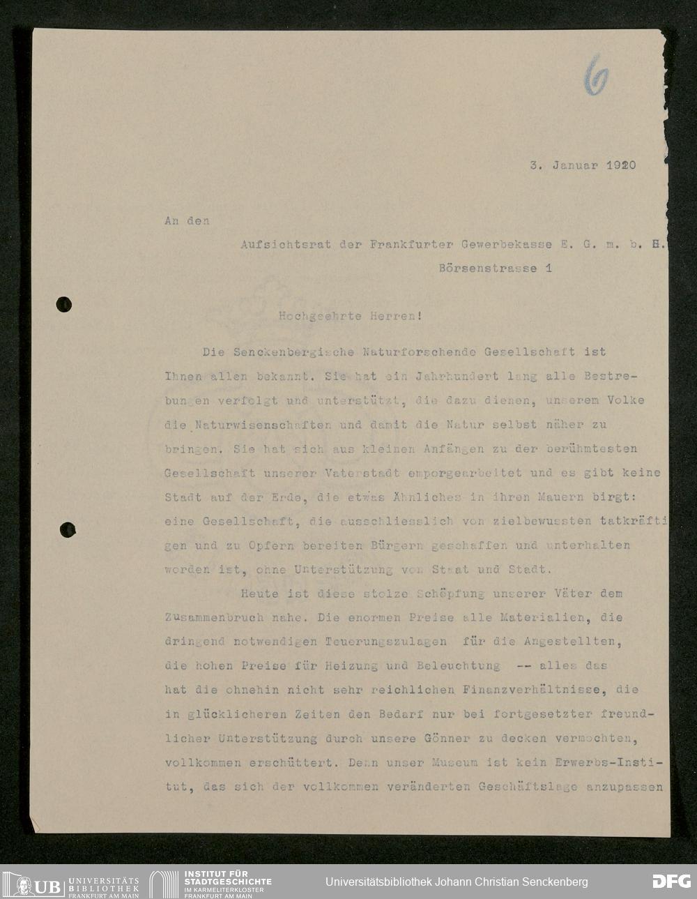 V176 Senckenberg Gesellschaft für Naturforschung, 581 - Mitgliederwerbung und Bitten um finanzielle Unterstützung der Senckenbergischen Naturforschenden Gesellschaft