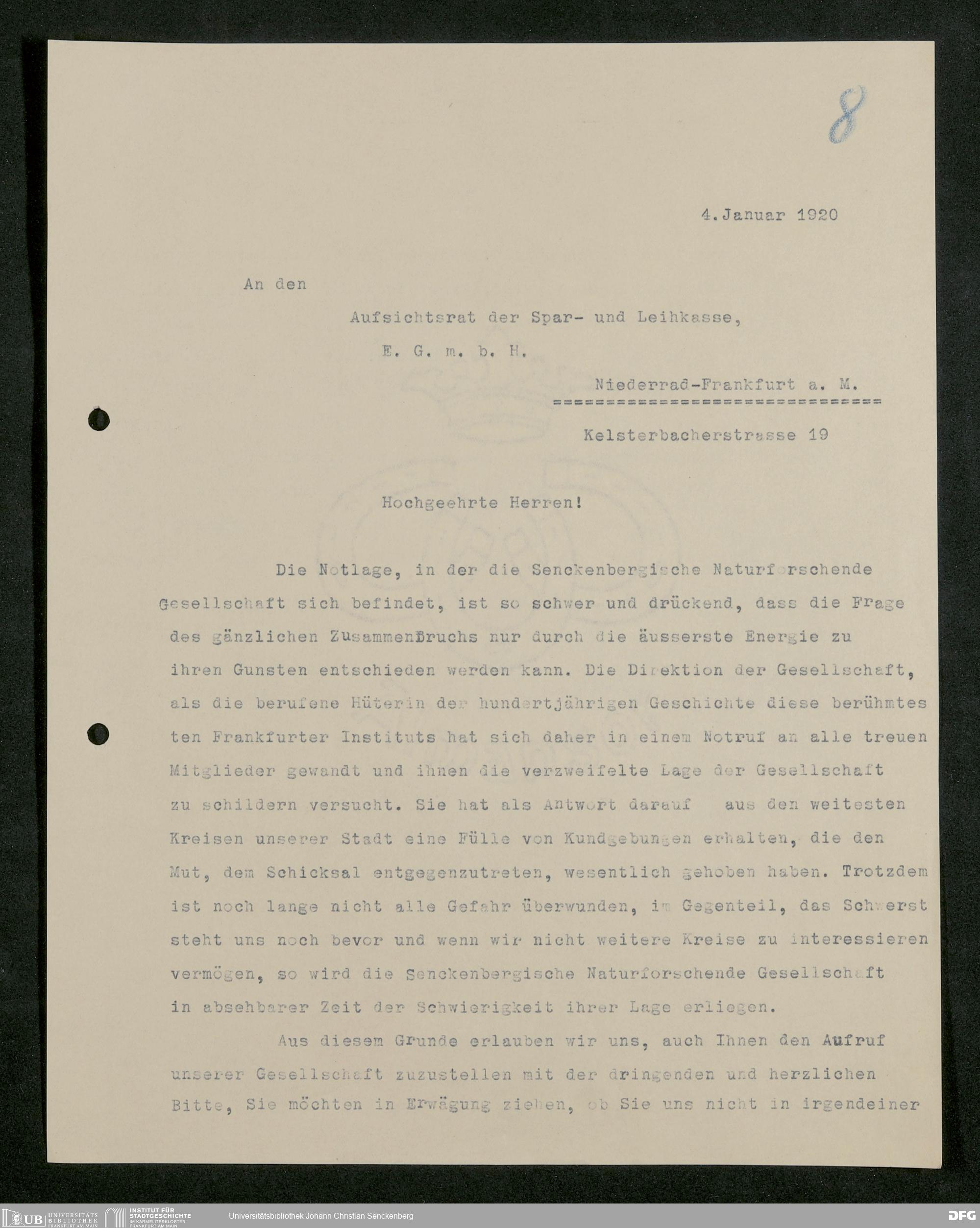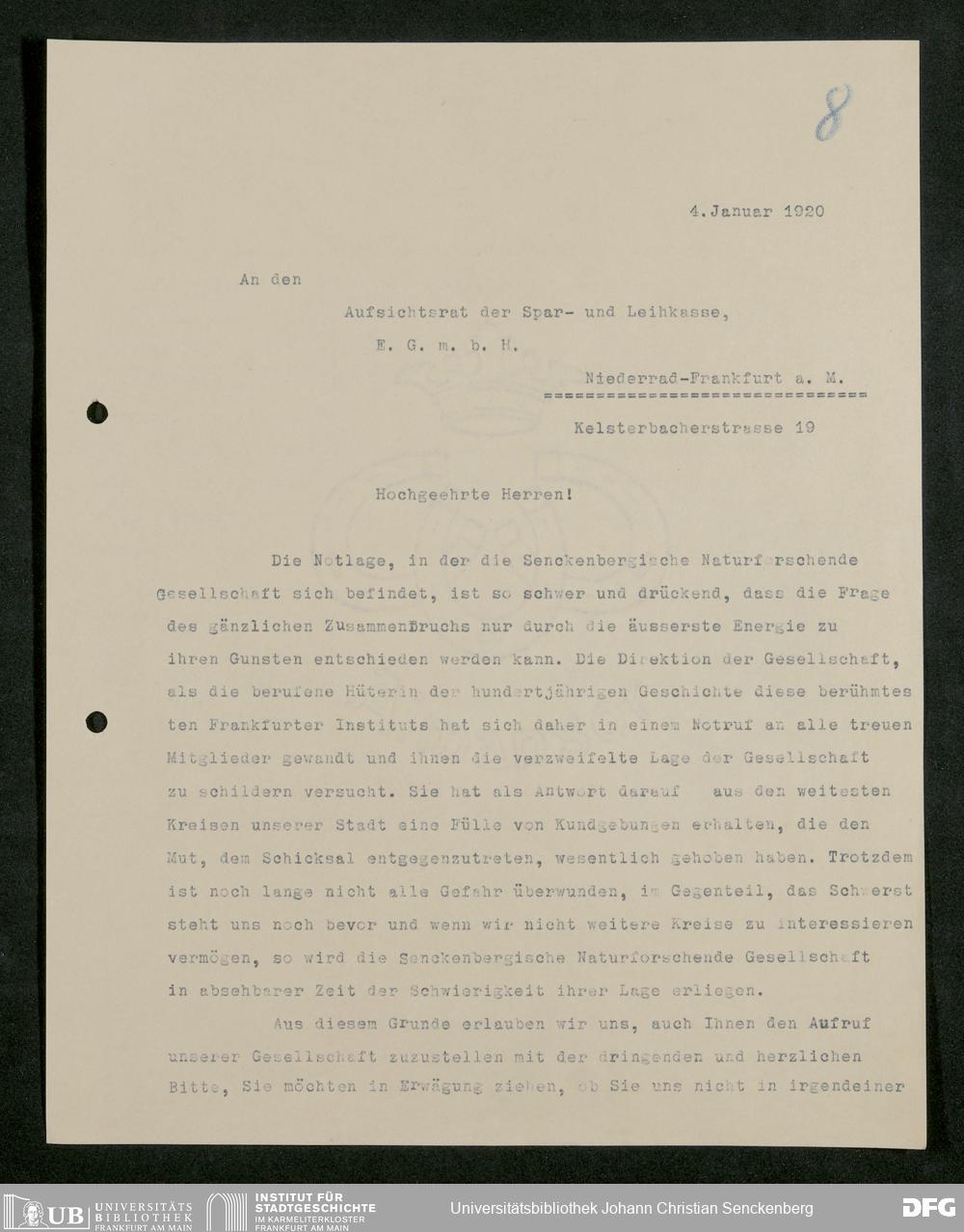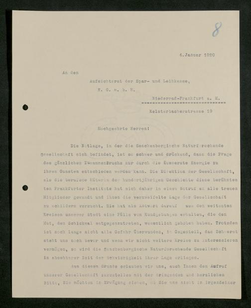V176 Senckenberg Gesellschaft für Naturforschung, 581 - Mitgliederwerbung und Bitten um finanzielle Unterstützung der Senckenbergischen Naturforschenden Gesellschaft