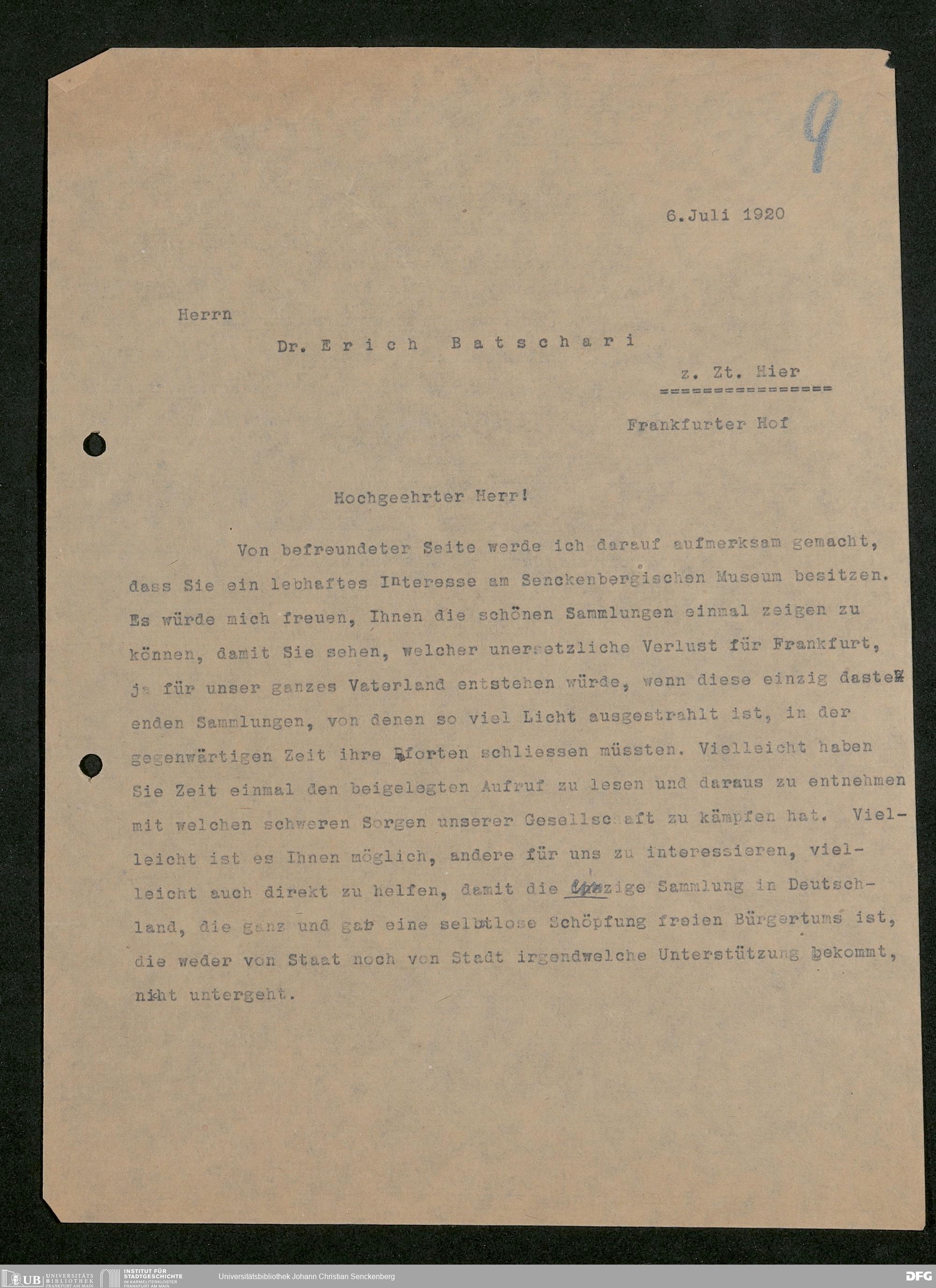 V176 Senckenberg Gesellschaft für Naturforschung, 581 - Mitgliederwerbung und Bitten um finanzielle Unterstützung der Senckenbergischen Naturforschenden Gesellschaft