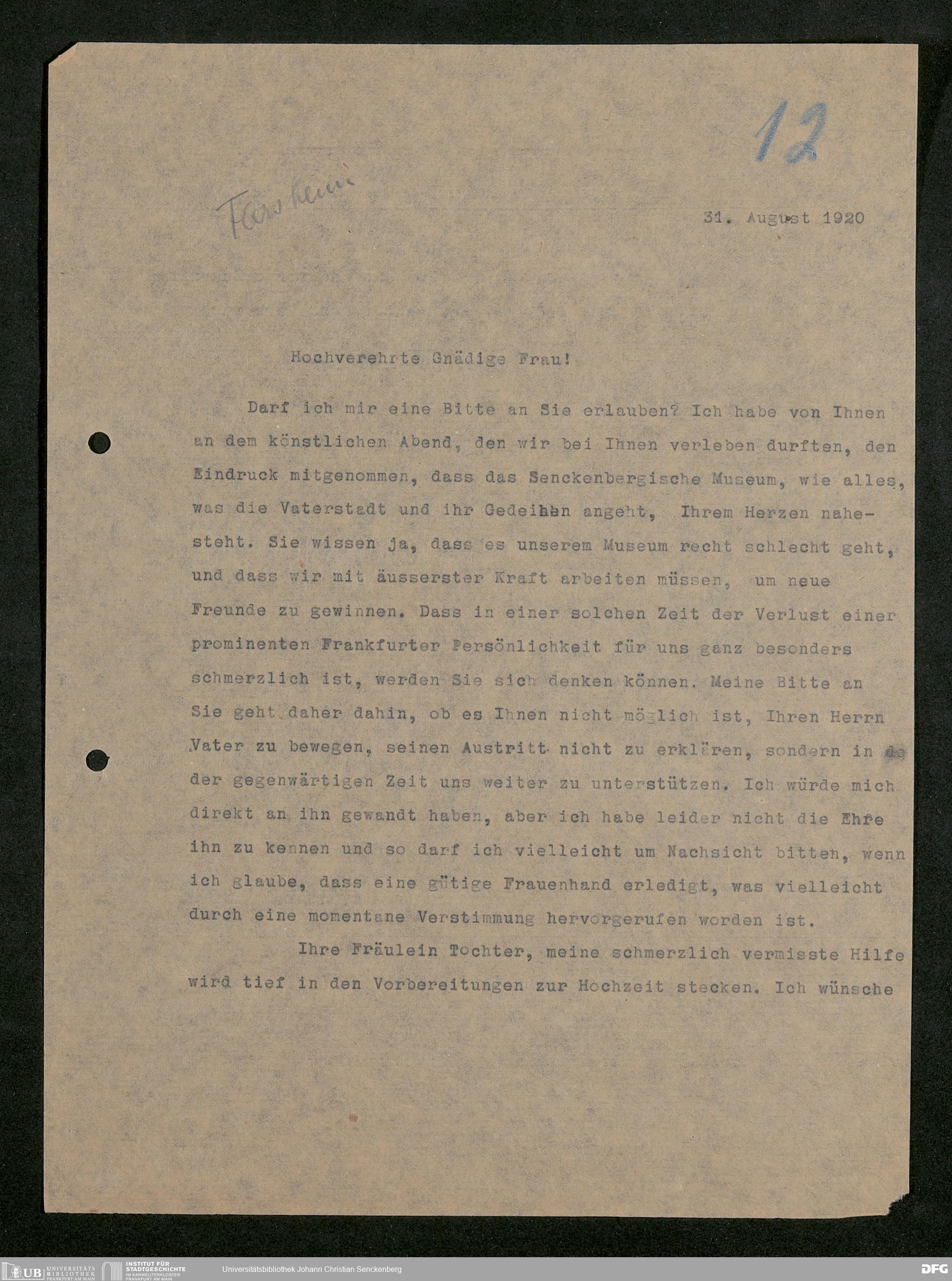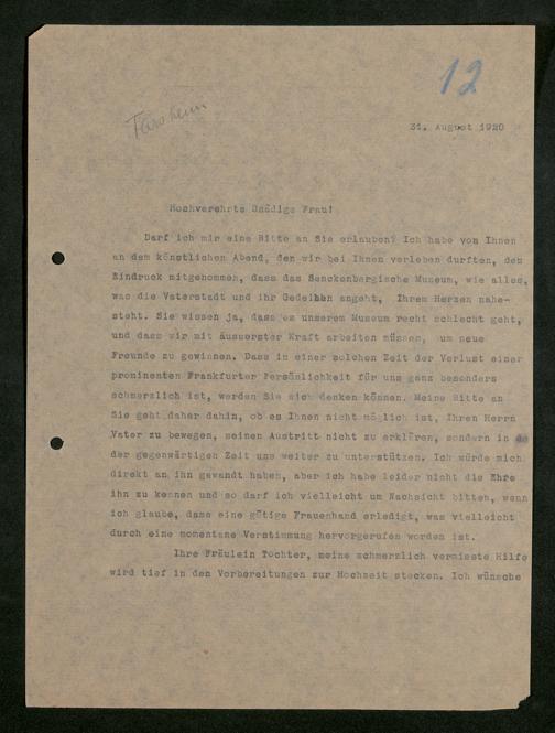 V176 Senckenberg Gesellschaft für Naturforschung, 581 - Mitgliederwerbung und Bitten um finanzielle Unterstützung der Senckenbergischen Naturforschenden Gesellschaft