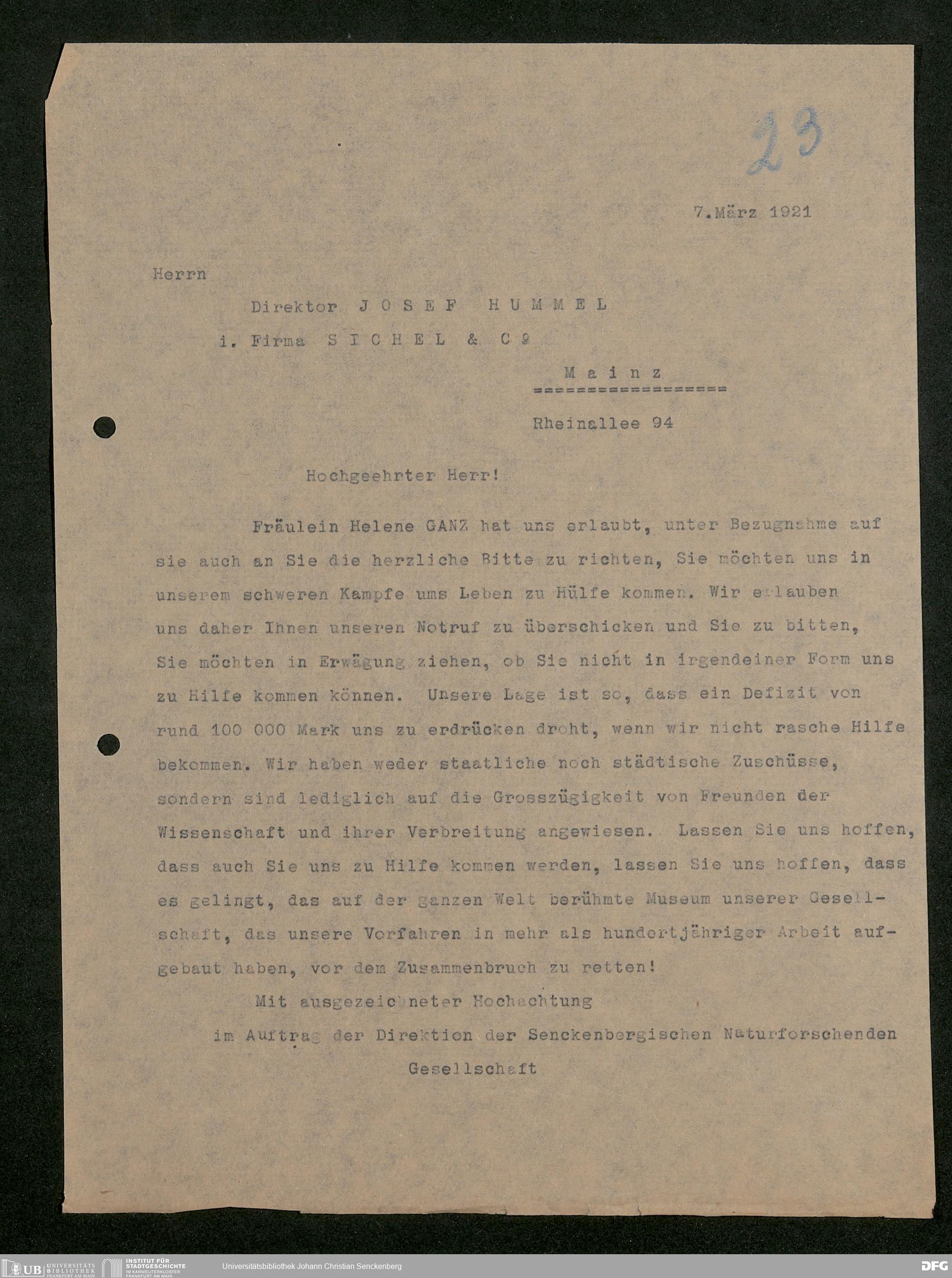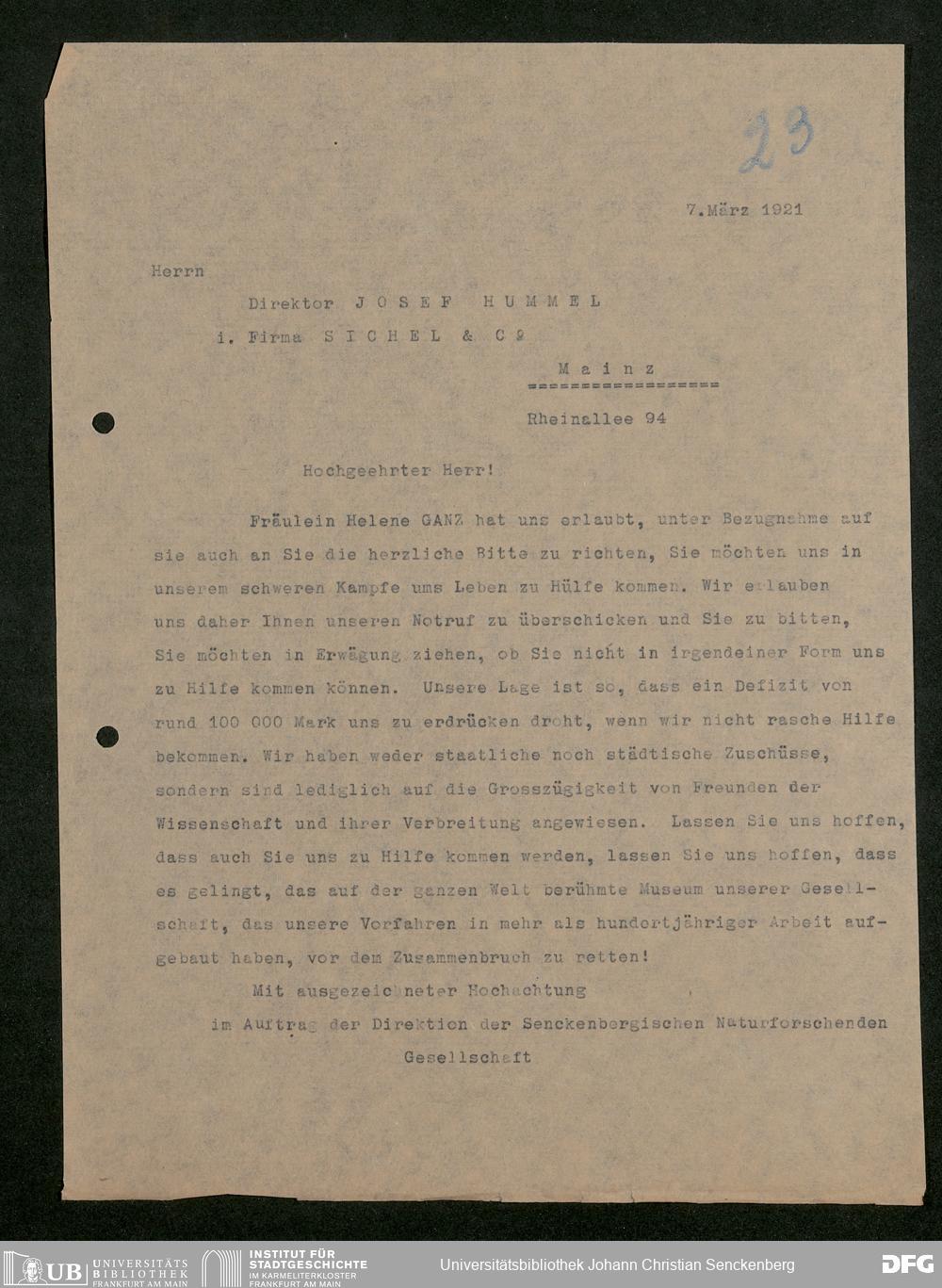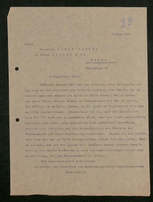 V176 Senckenberg Gesellschaft für Naturforschung, 581 - Mitgliederwerbung und Bitten um finanzielle Unterstützung der Senckenbergischen Naturforschenden Gesellschaft