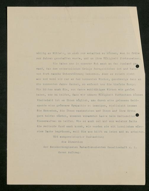 V176 Senckenberg Gesellschaft für Naturforschung, 581 - Mitgliederwerbung und Bitten um finanzielle Unterstützung der Senckenbergischen Naturforschenden Gesellschaft