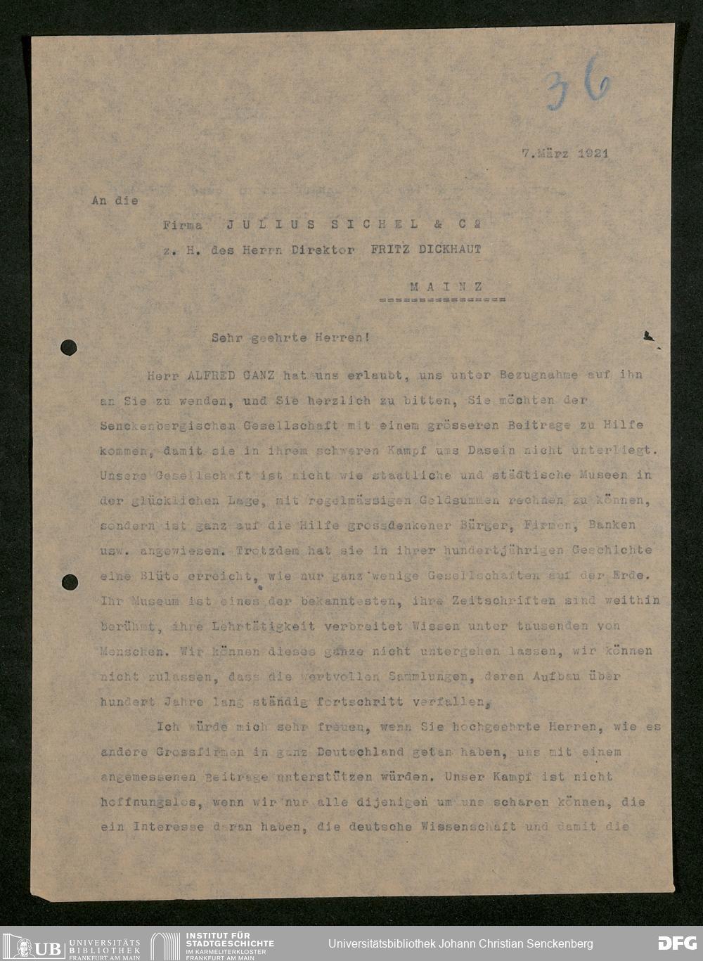 V176 Senckenberg Gesellschaft für Naturforschung, 581 - Mitgliederwerbung und Bitten um finanzielle Unterstützung der Senckenbergischen Naturforschenden Gesellschaft