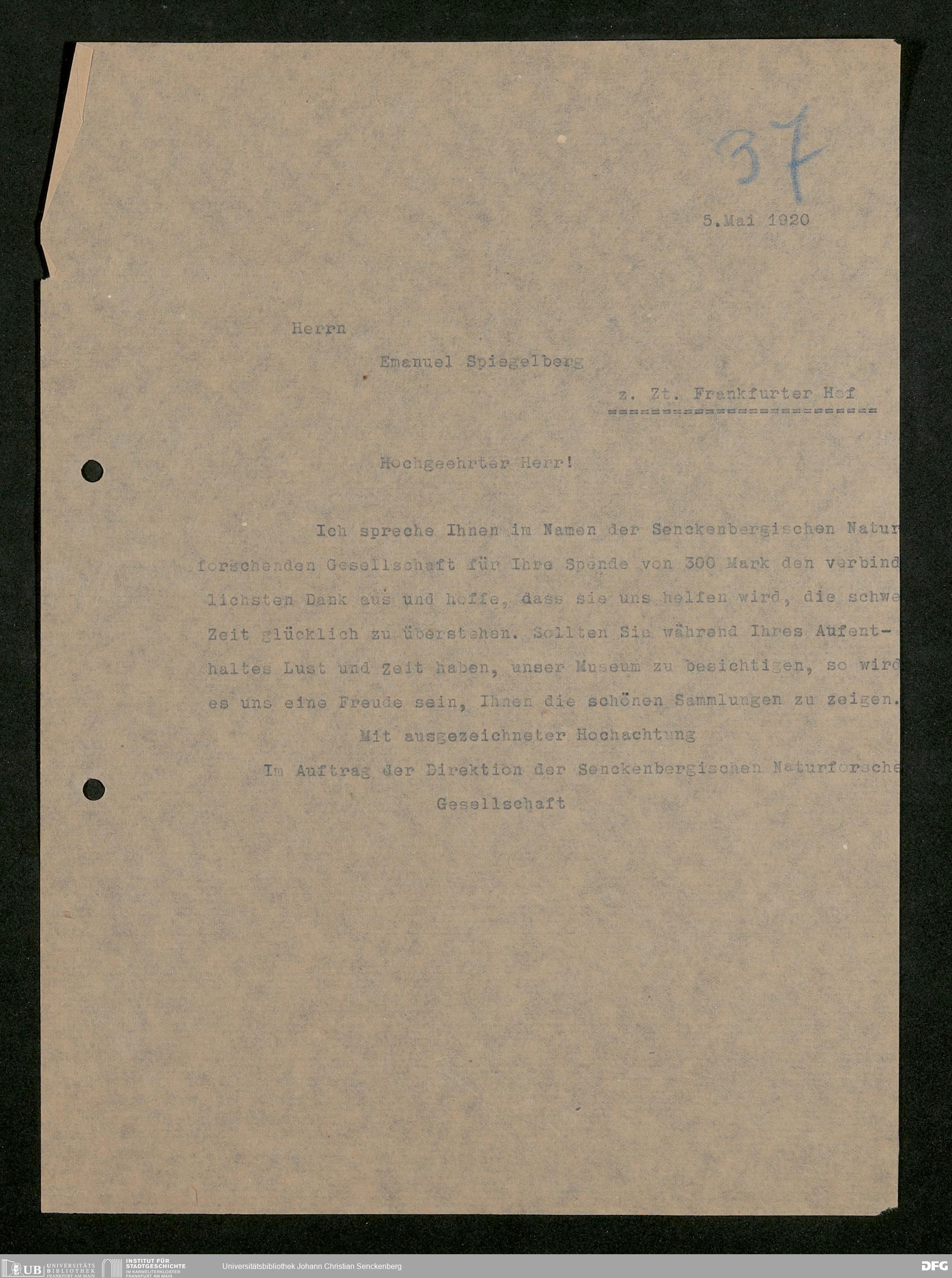 V176 Senckenberg Gesellschaft für Naturforschung, 581 - Mitgliederwerbung und Bitten um finanzielle Unterstützung der Senckenbergischen Naturforschenden Gesellschaft