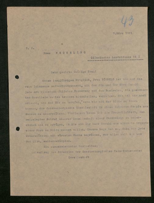 V176 Senckenberg Gesellschaft für Naturforschung, 581 - Mitgliederwerbung und Bitten um finanzielle Unterstützung der Senckenbergischen Naturforschenden Gesellschaft