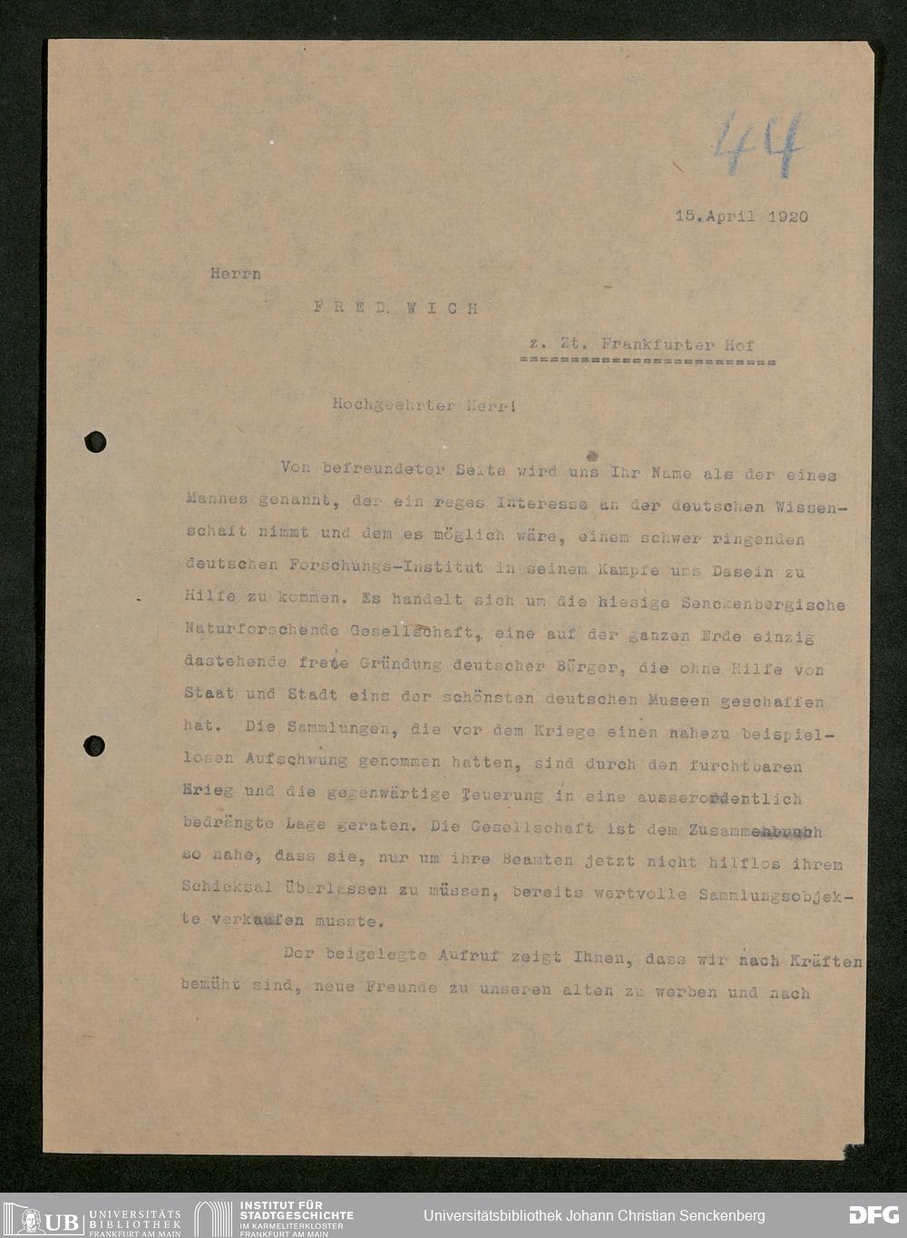 V176 Senckenberg Gesellschaft für Naturforschung, 581 - Mitgliederwerbung und Bitten um finanzielle Unterstützung der Senckenbergischen Naturforschenden Gesellschaft