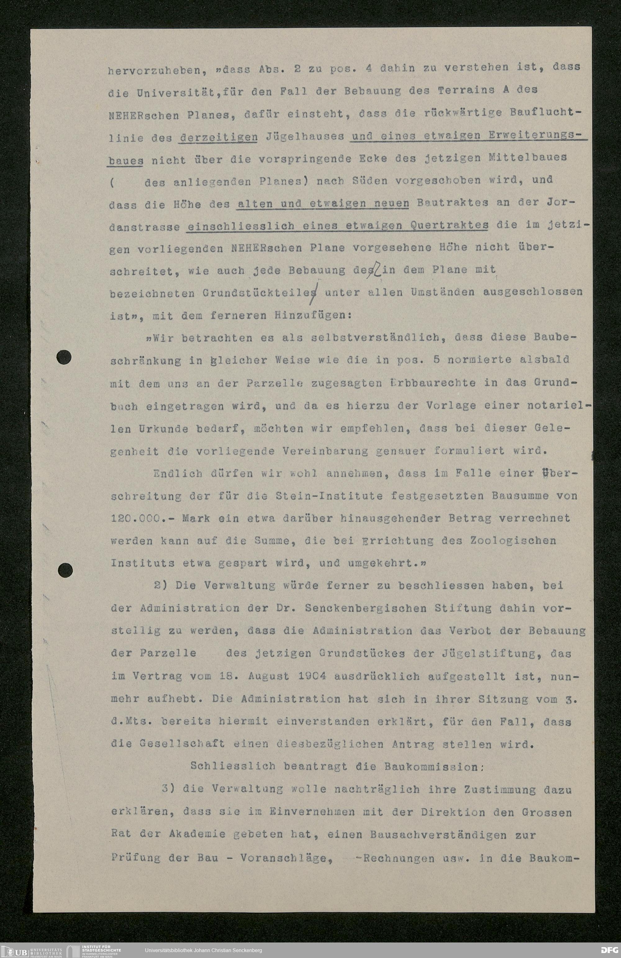 V176 Senckenberg Gesellschaft für Naturforschung, 586 - Erweiterung des Senckenbergmuseums und Neubau von Universitätsinstituten