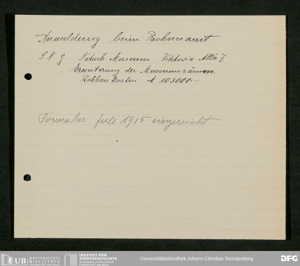 V176 Senckenberg Gesellschaft für Naturforschung, 586 - Erweiterung des Senckenbergmuseums und Neubau von Universitätsinstituten