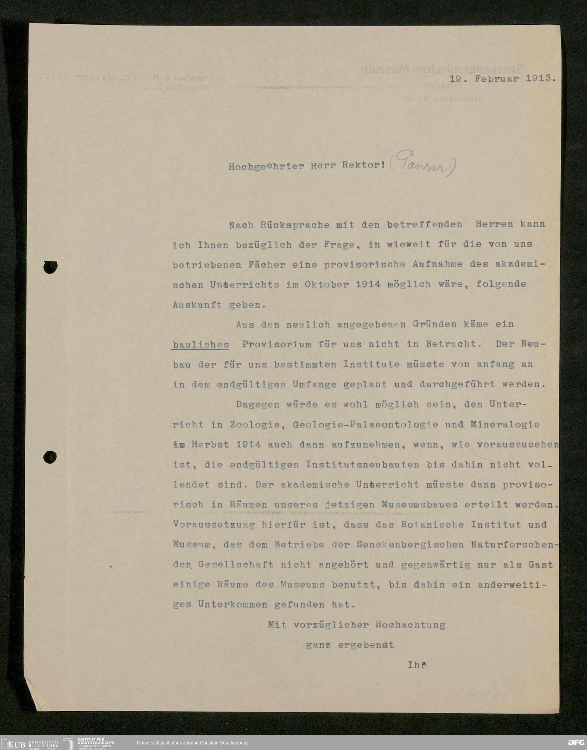 V176 Senckenberg Gesellschaft für Naturforschung, 586 - Erweiterung des Senckenbergmuseums und Neubau von Universitätsinstituten