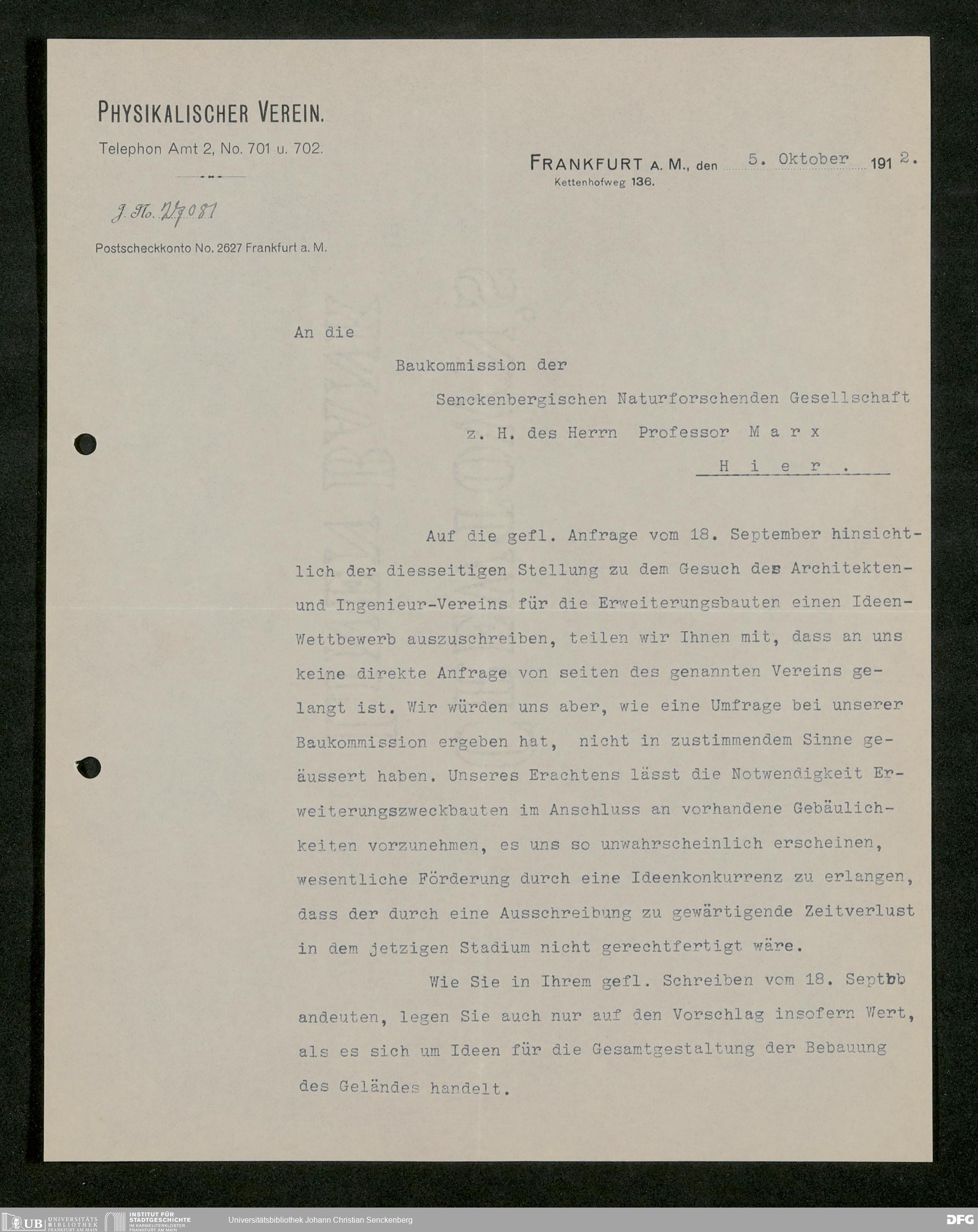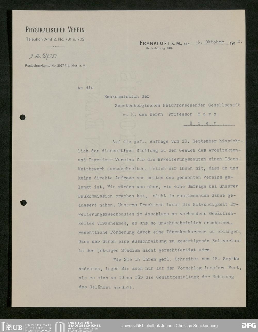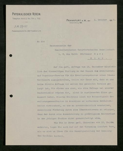 V176 Senckenberg Gesellschaft für Naturforschung, 586 - Erweiterung des Senckenbergmuseums und Neubau von Universitätsinstituten