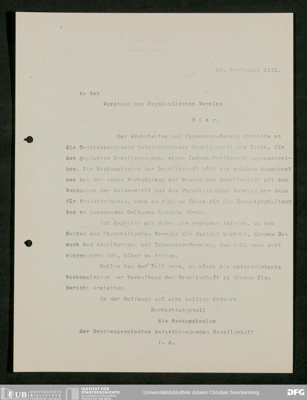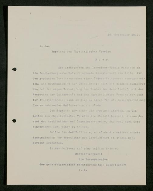 V176 Senckenberg Gesellschaft für Naturforschung, 586 - Erweiterung des Senckenbergmuseums und Neubau von Universitätsinstituten