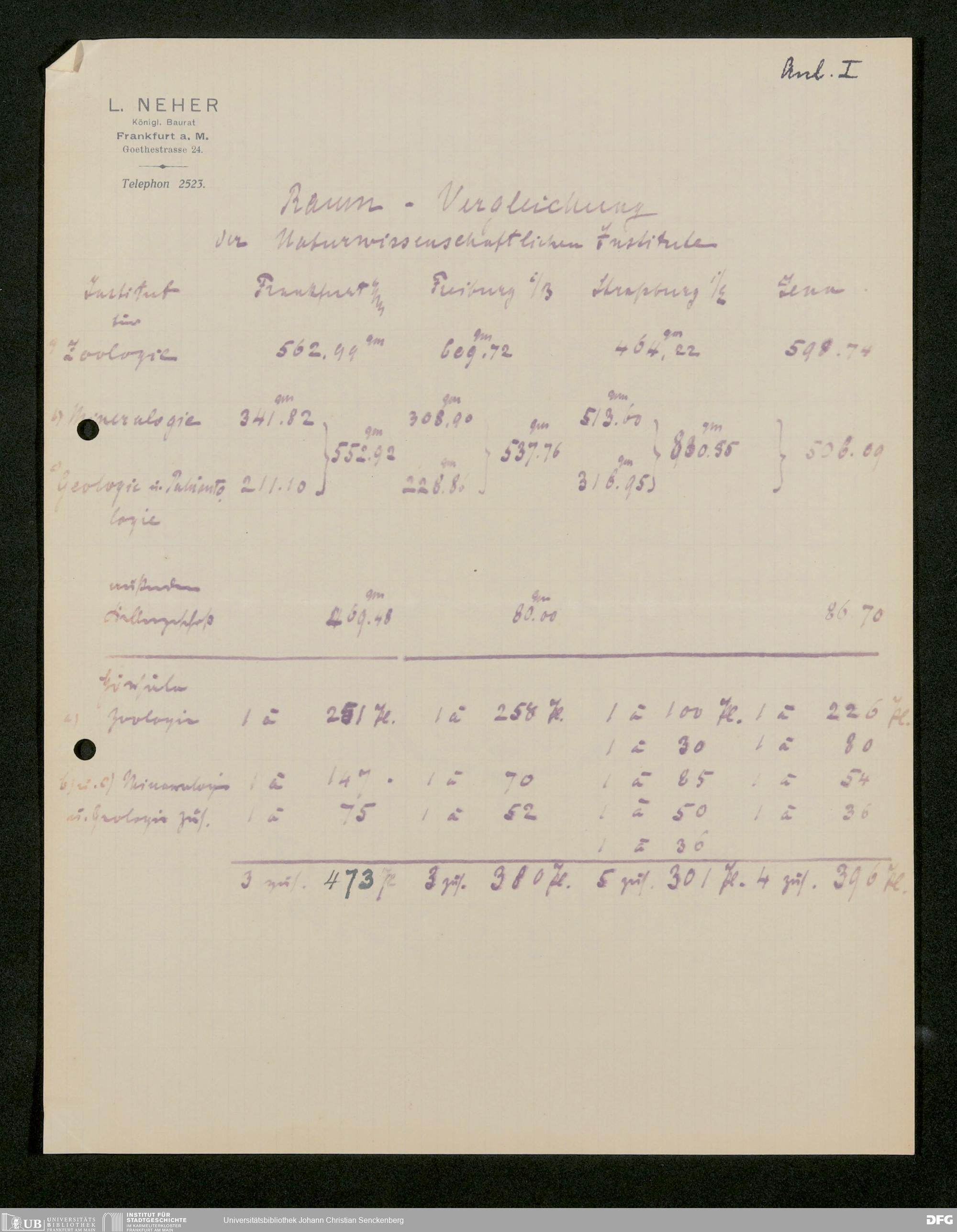V176 Senckenberg Gesellschaft für Naturforschung, 586 - Erweiterung des Senckenbergmuseums und Neubau von Universitätsinstituten