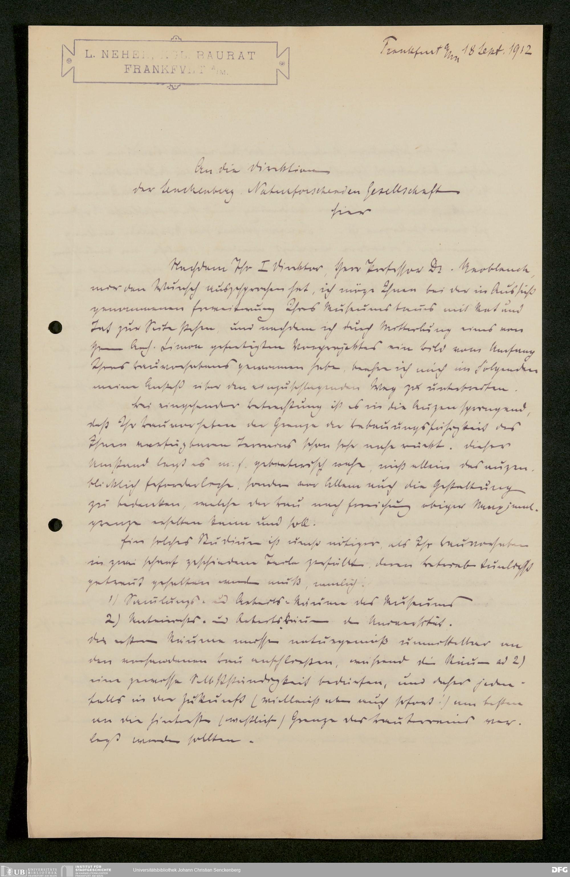 V176 Senckenberg Gesellschaft für Naturforschung, 586 - Erweiterung des Senckenbergmuseums und Neubau von Universitätsinstituten