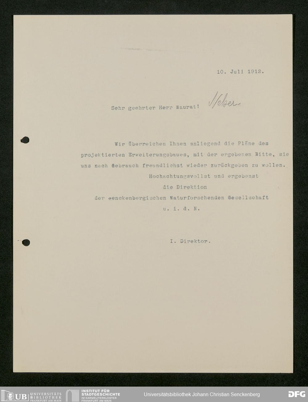 V176 Senckenberg Gesellschaft für Naturforschung, 586 - Erweiterung des Senckenbergmuseums und Neubau von Universitätsinstituten