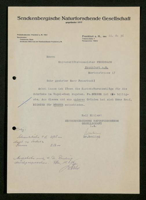 V176 Senckenberg Gesellschaft für Naturforschung, 593 - Ankauf von Vitrinen und Anbringung von Absperrungen im Senckenbergmuseum