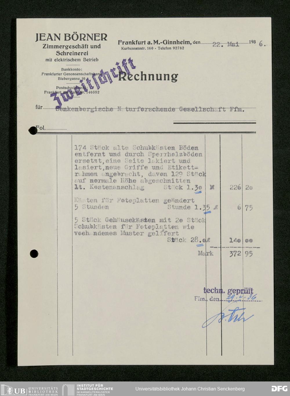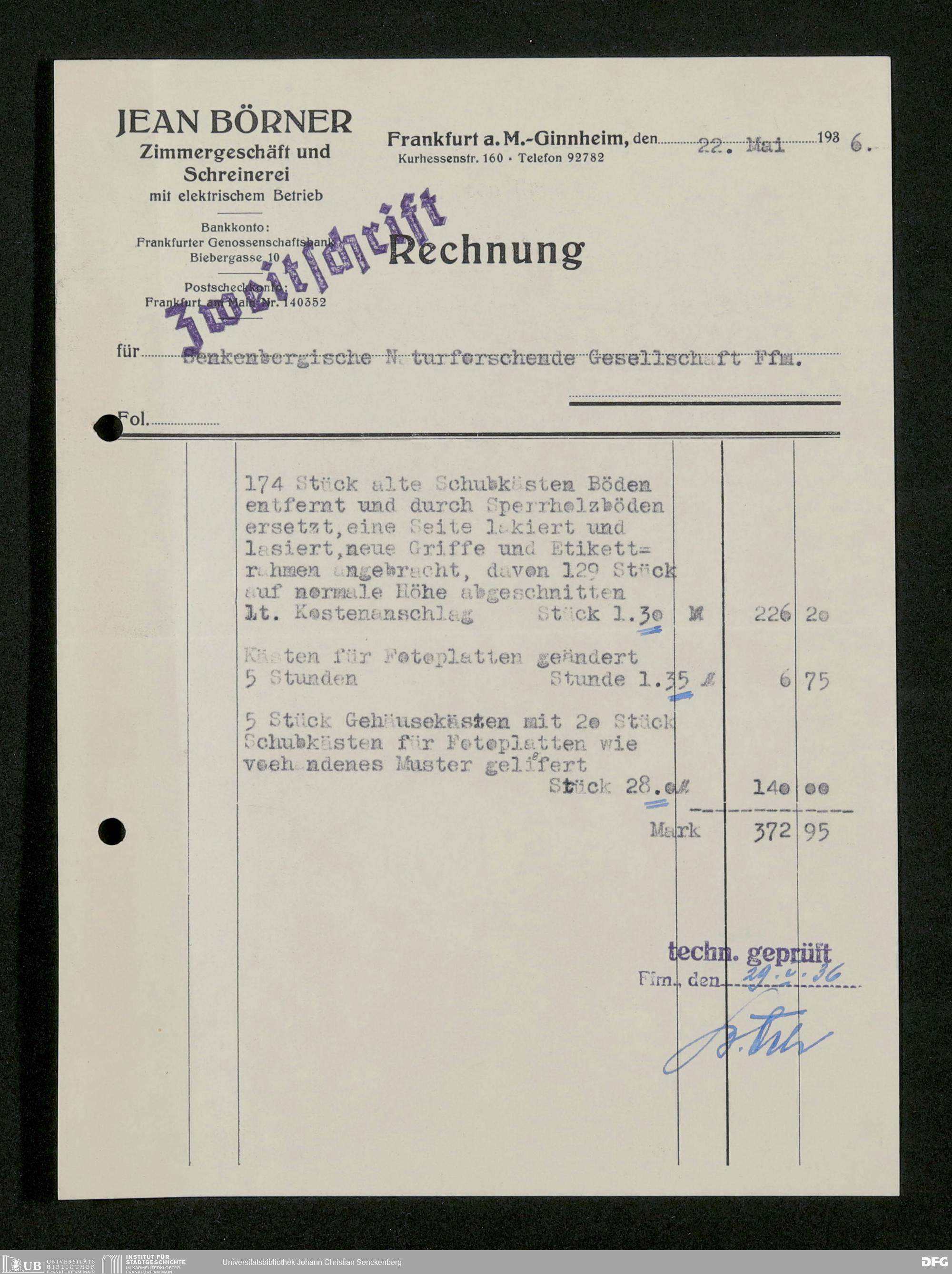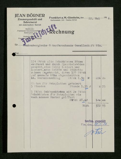 V176 Senckenberg Gesellschaft für Naturforschung, 593 - Ankauf von Vitrinen und Anbringung von Absperrungen im Senckenbergmuseum