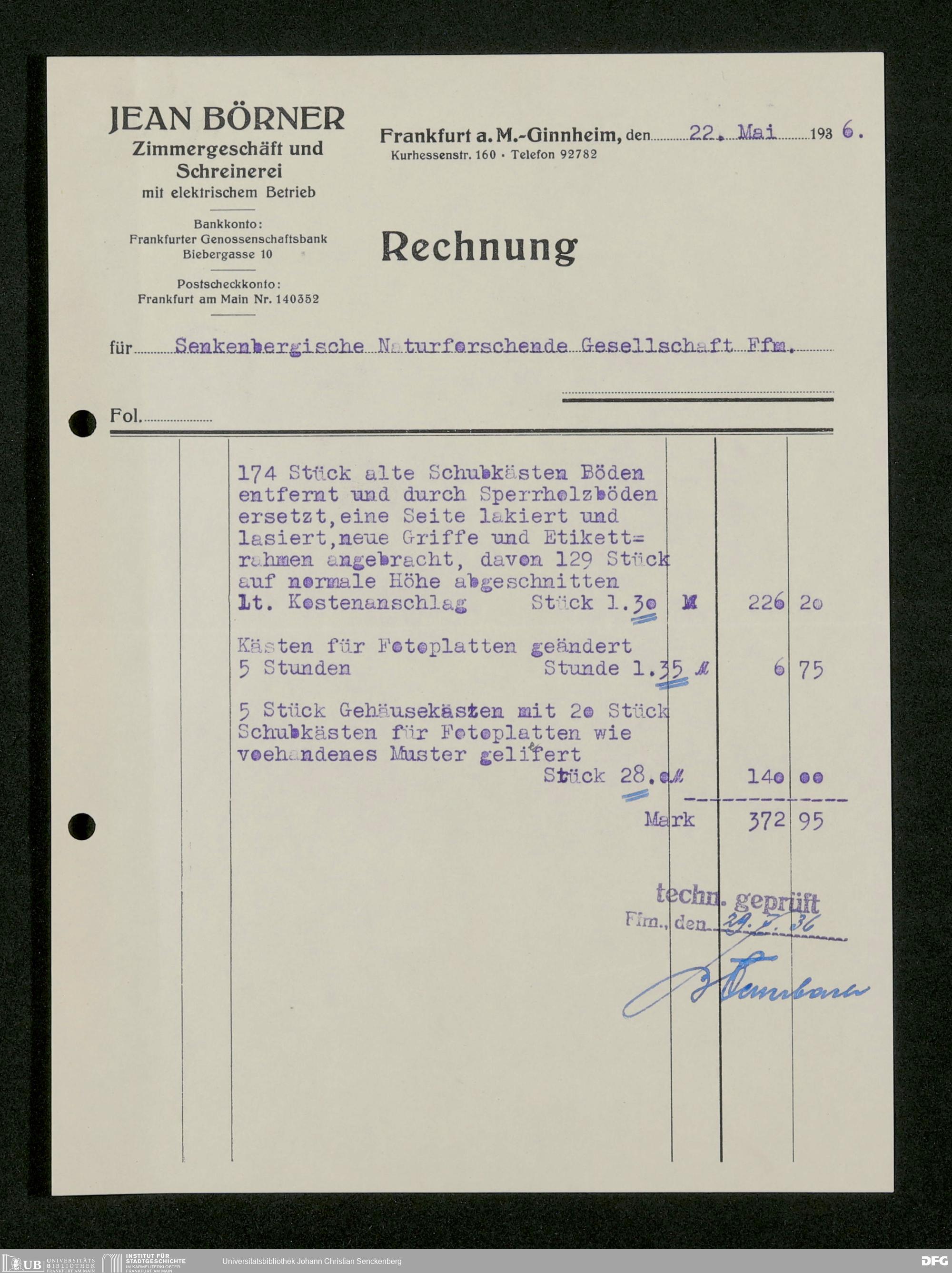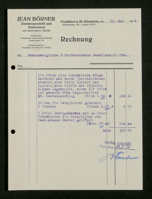 V176 Senckenberg Gesellschaft für Naturforschung, 593 - Ankauf von Vitrinen und Anbringung von Absperrungen im Senckenbergmuseum