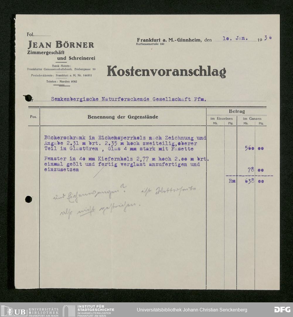 V176 Senckenberg Gesellschaft für Naturforschung, 593 - Ankauf von Vitrinen und Anbringung von Absperrungen im Senckenbergmuseum