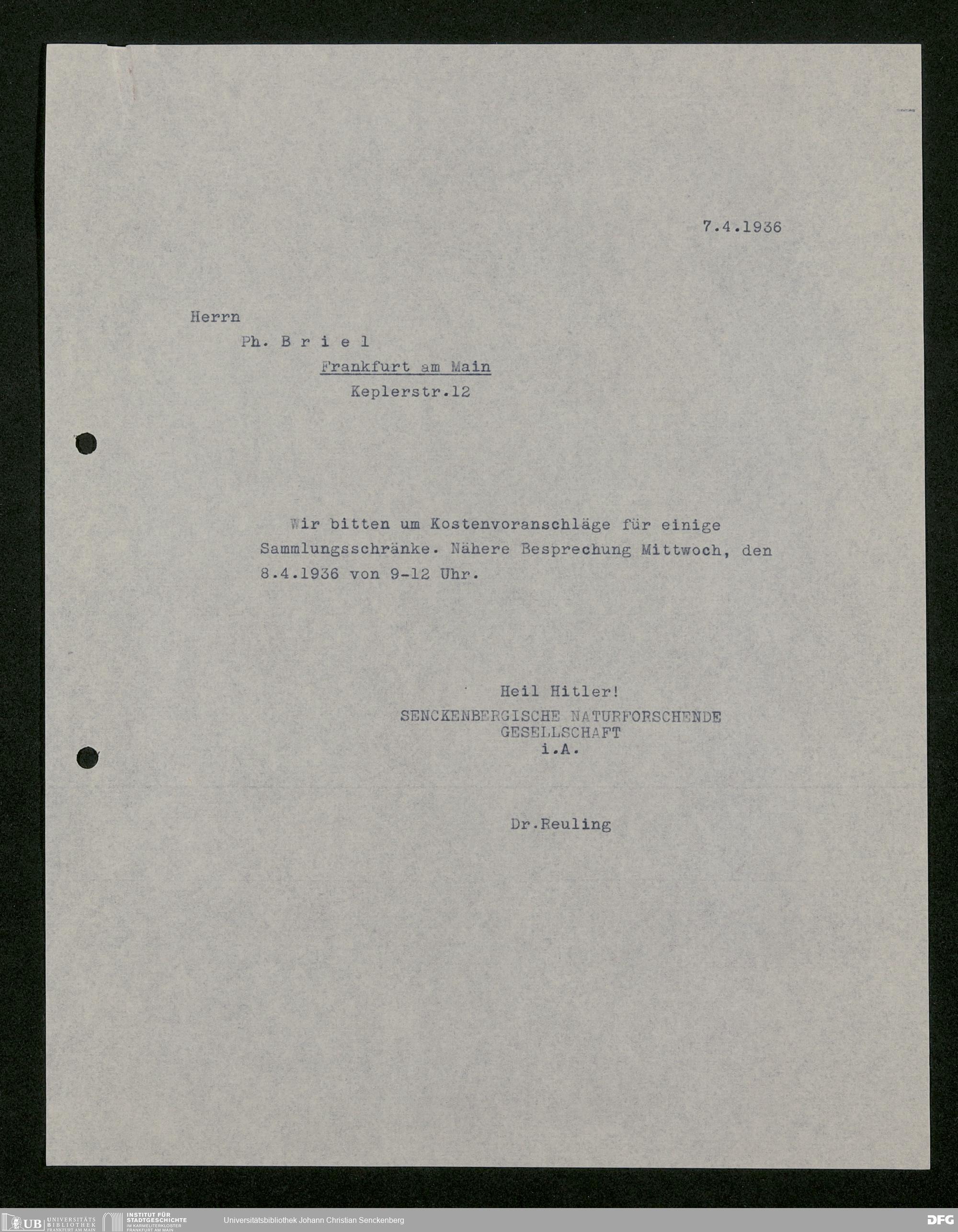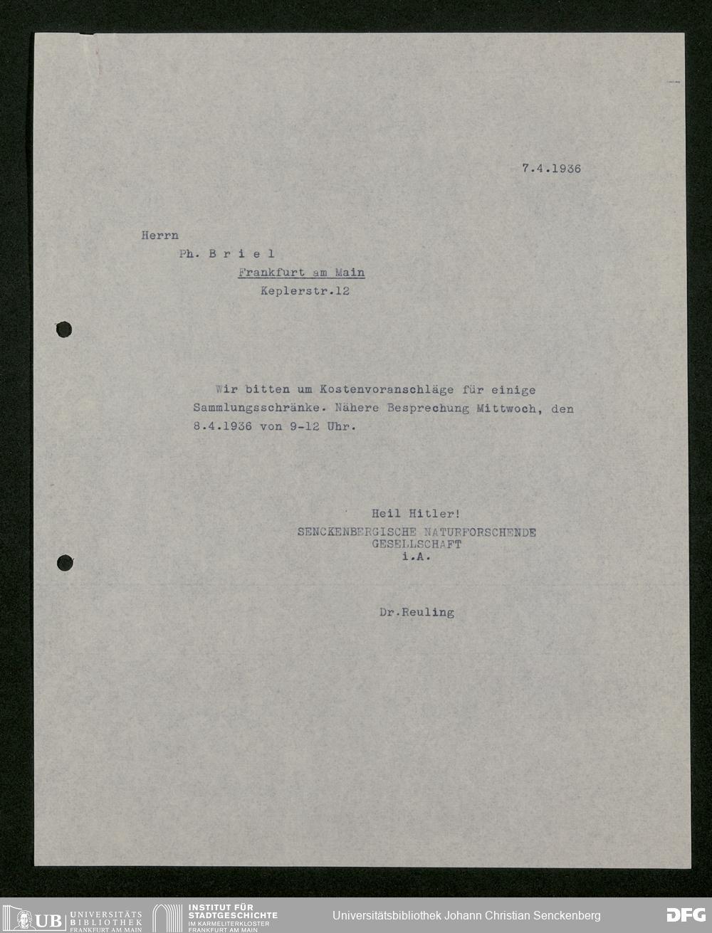 V176 Senckenberg Gesellschaft für Naturforschung, 593 - Ankauf von Vitrinen und Anbringung von Absperrungen im Senckenbergmuseum