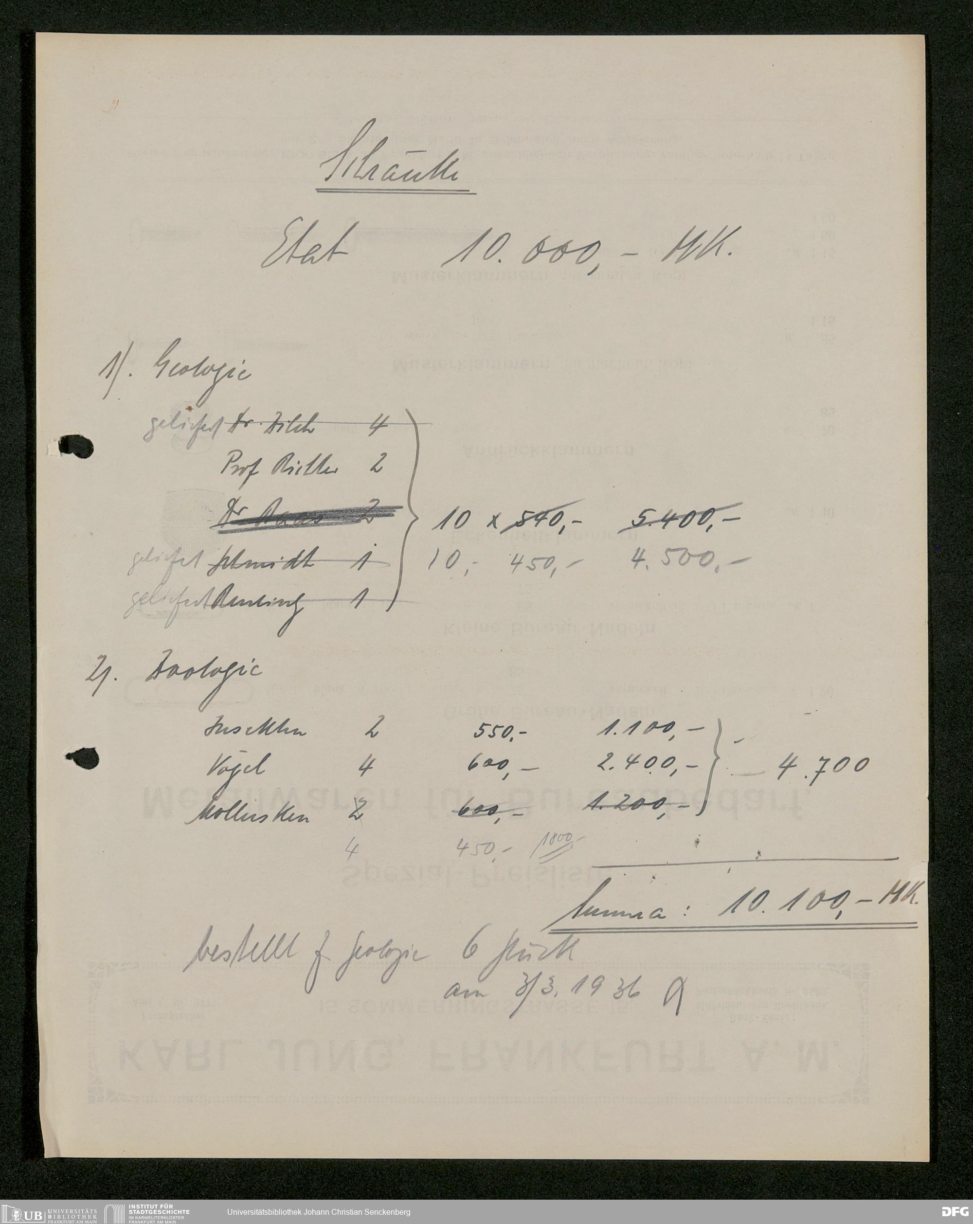 V176 Senckenberg Gesellschaft für Naturforschung, 593 - Ankauf von Vitrinen und Anbringung von Absperrungen im Senckenbergmuseum